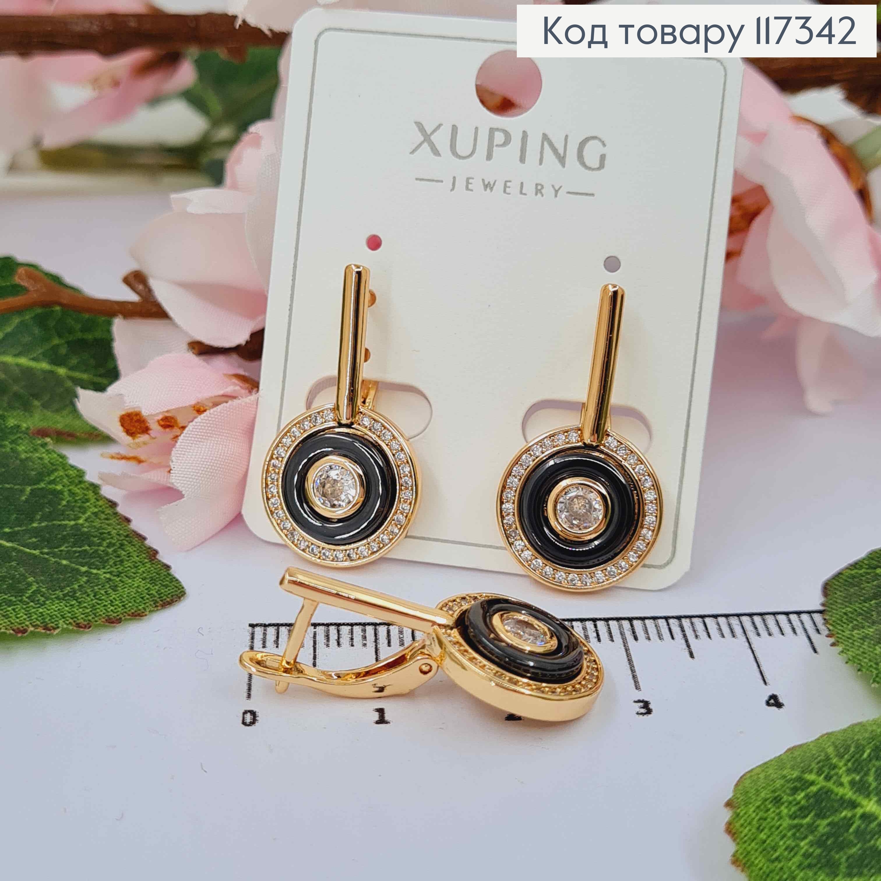 Серьги "Богемия" с черной круглой вставкой и камешками, дл. 2,6см, англ. застежка, Xuping 18K
