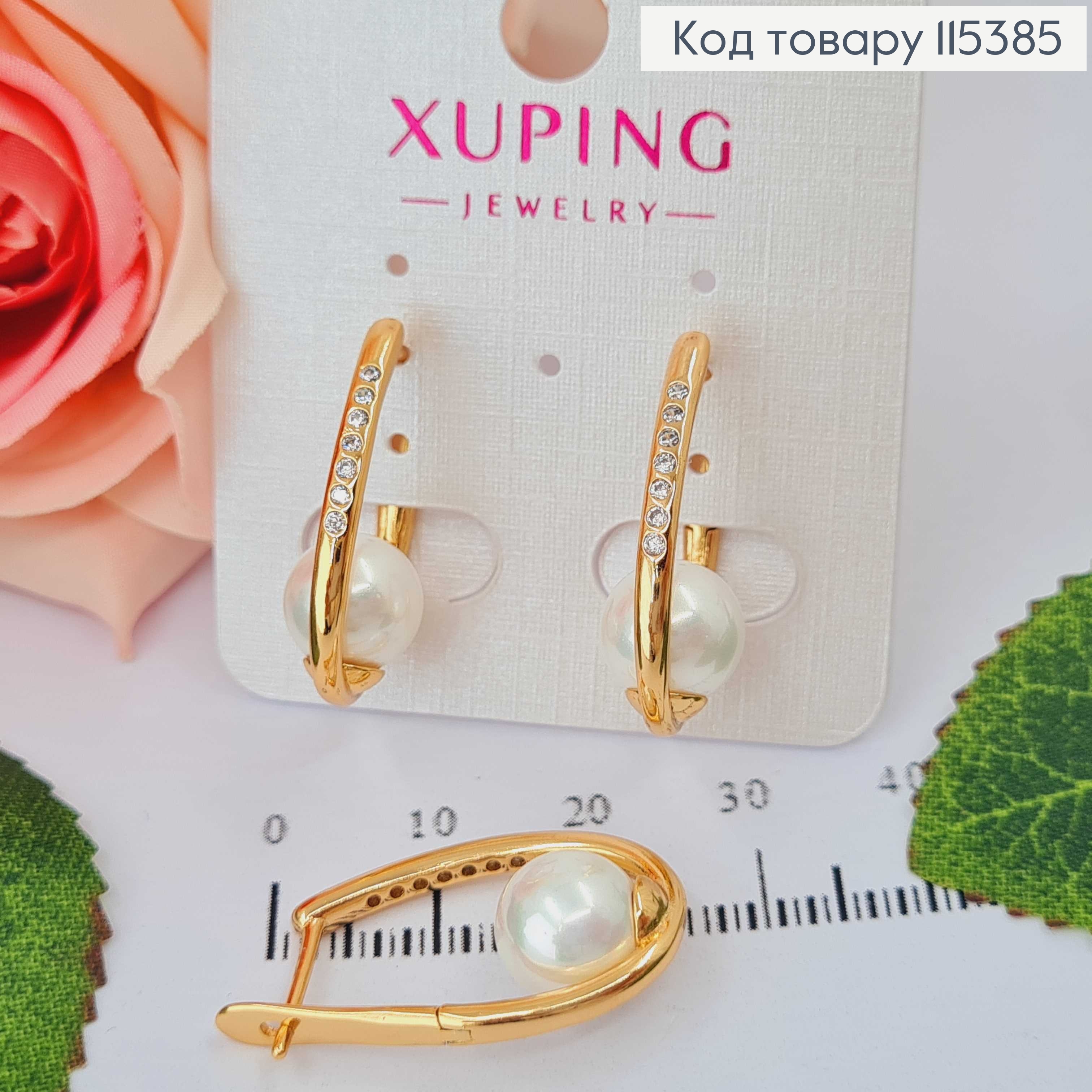 Серьги дуга с жемчугом и камешками 2,5см, Xuping 18K