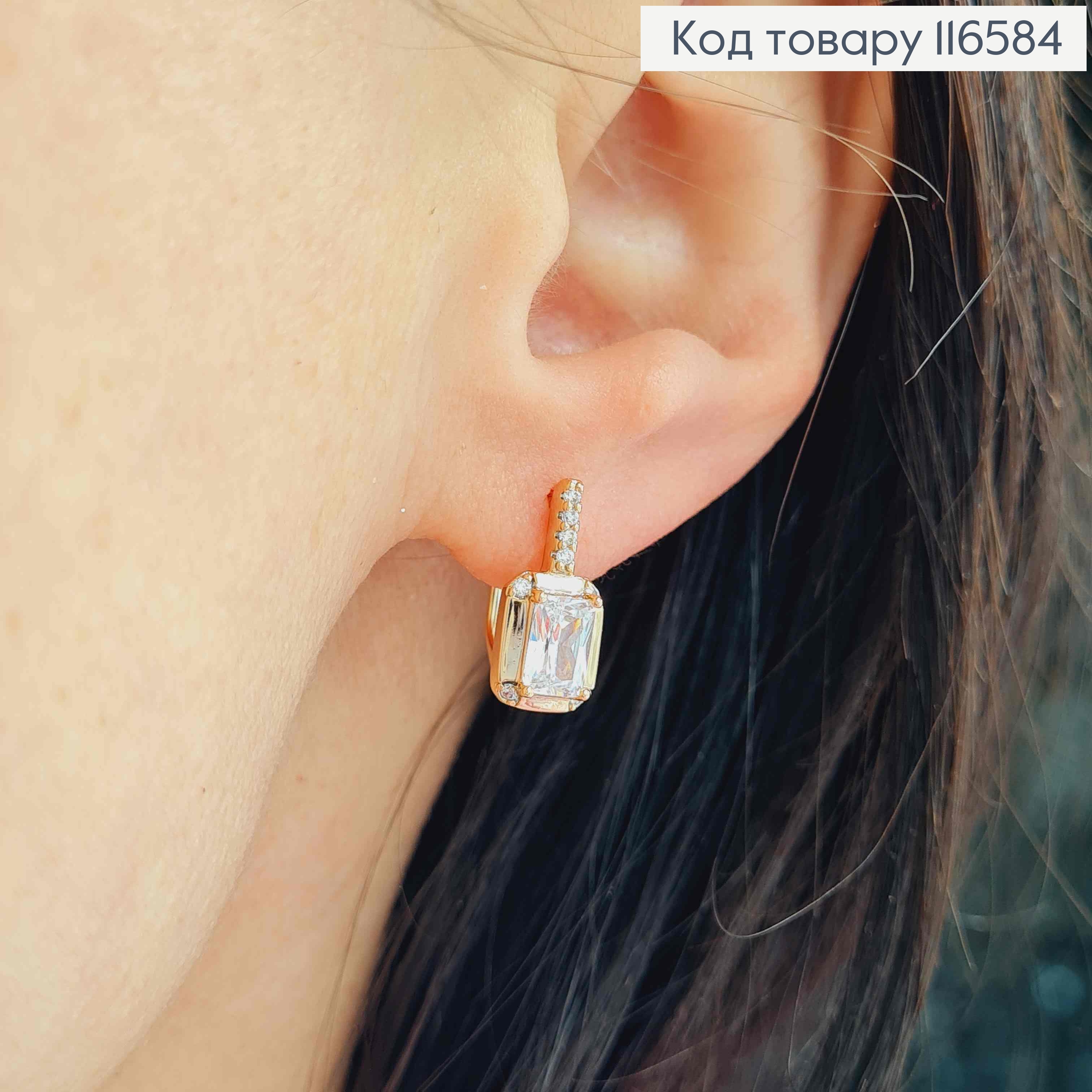 Серьги с квадратным блестящим камнем, 1,9см, английская застежка, Xuping 18K 110257 фото