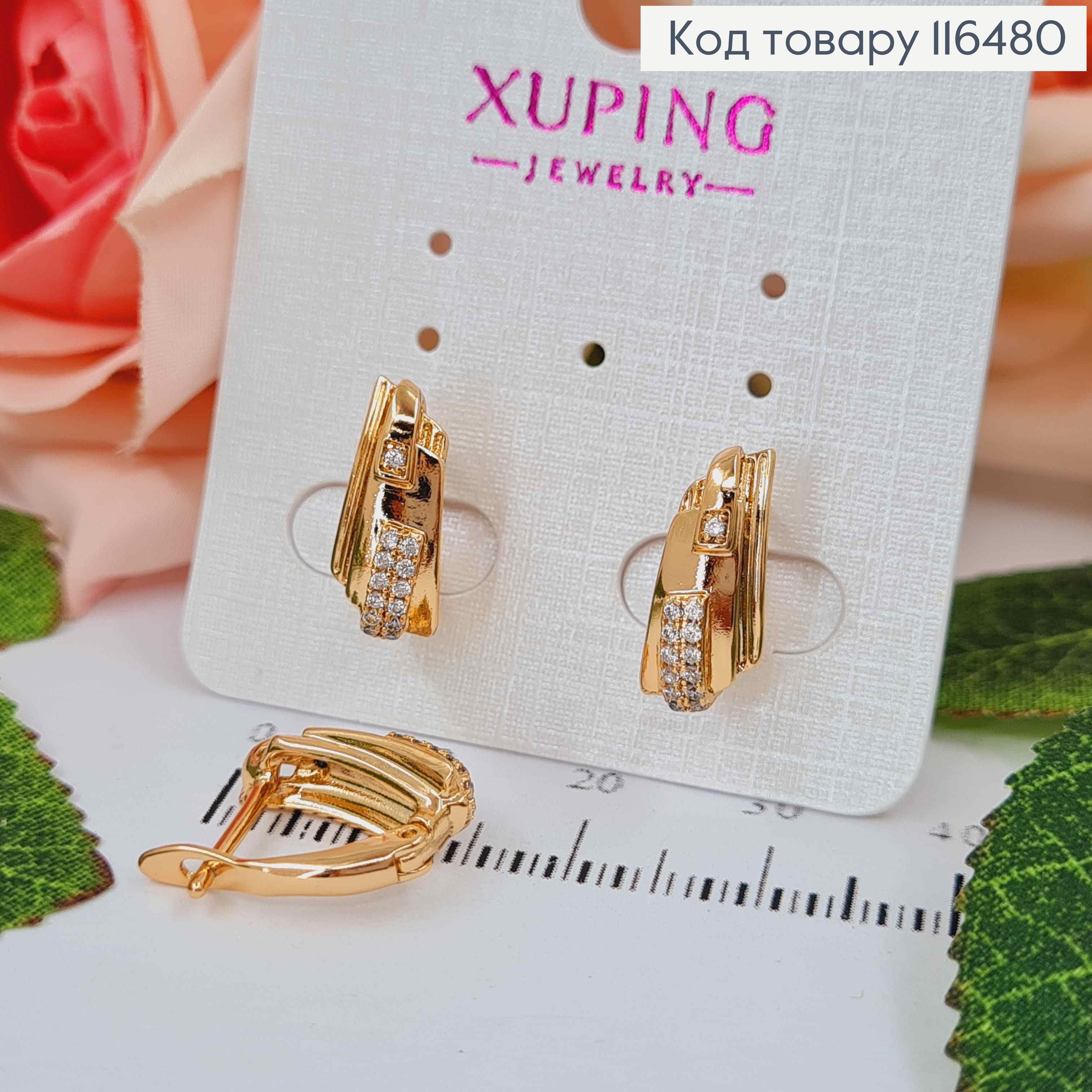 Серьги с изысканным блестящим камнем, 1,6см, английская застежка, Xuping 18К. 110253 фото