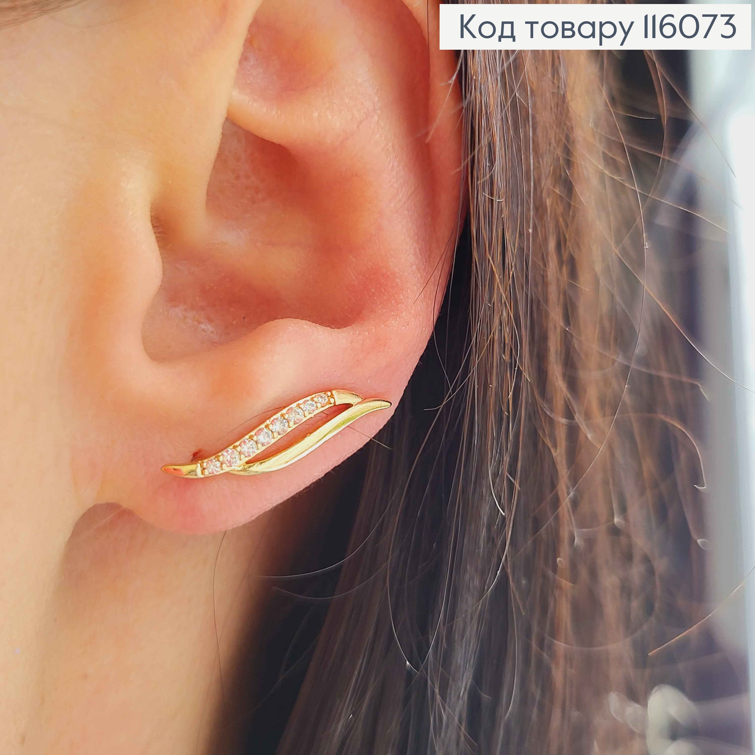Серьги крючки, "Коготь Дракона" с белыми камешками, 2см. Xuping 18К