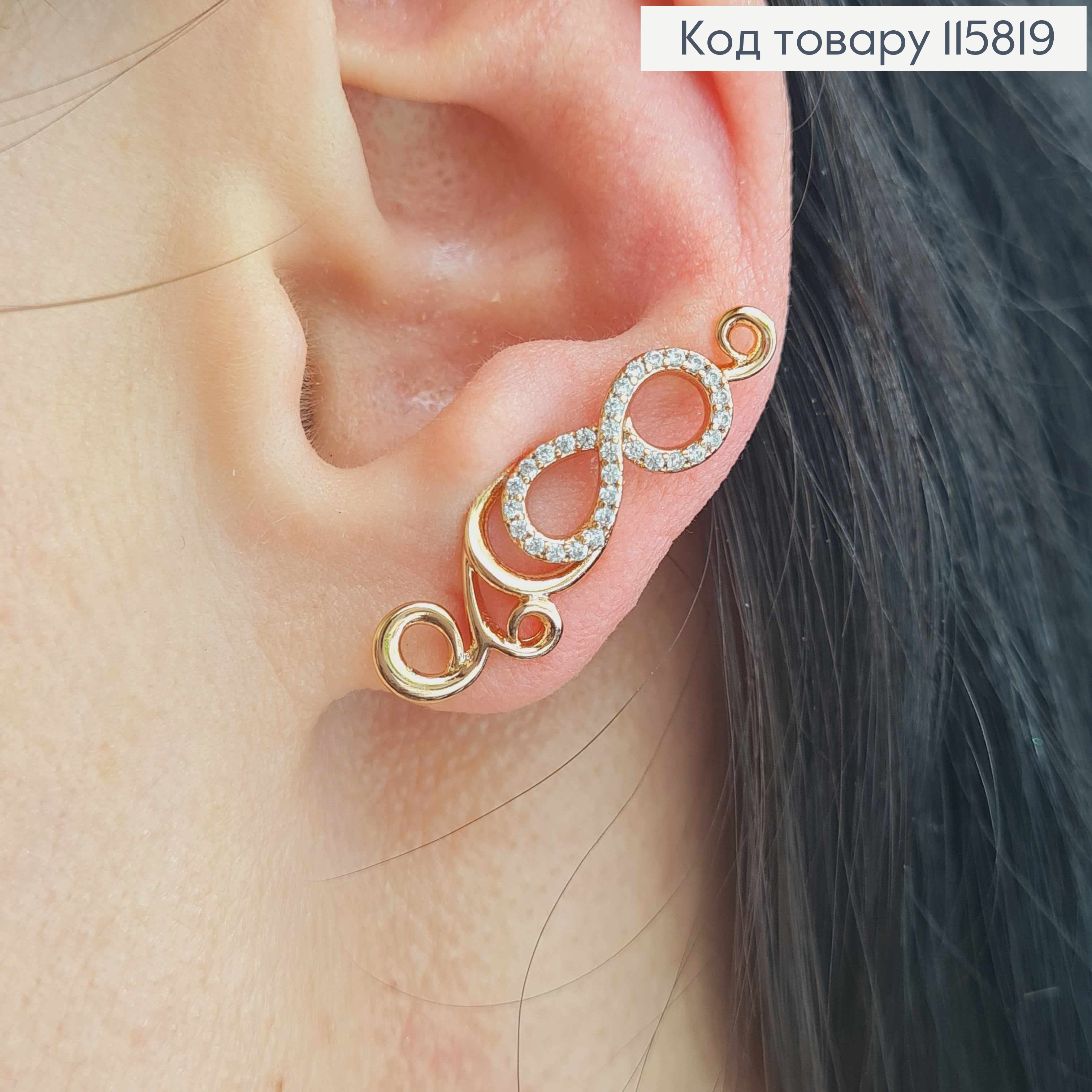 Серьги крючки, "Бесконечность" с вензельочками в камнях, Xuping 18K
