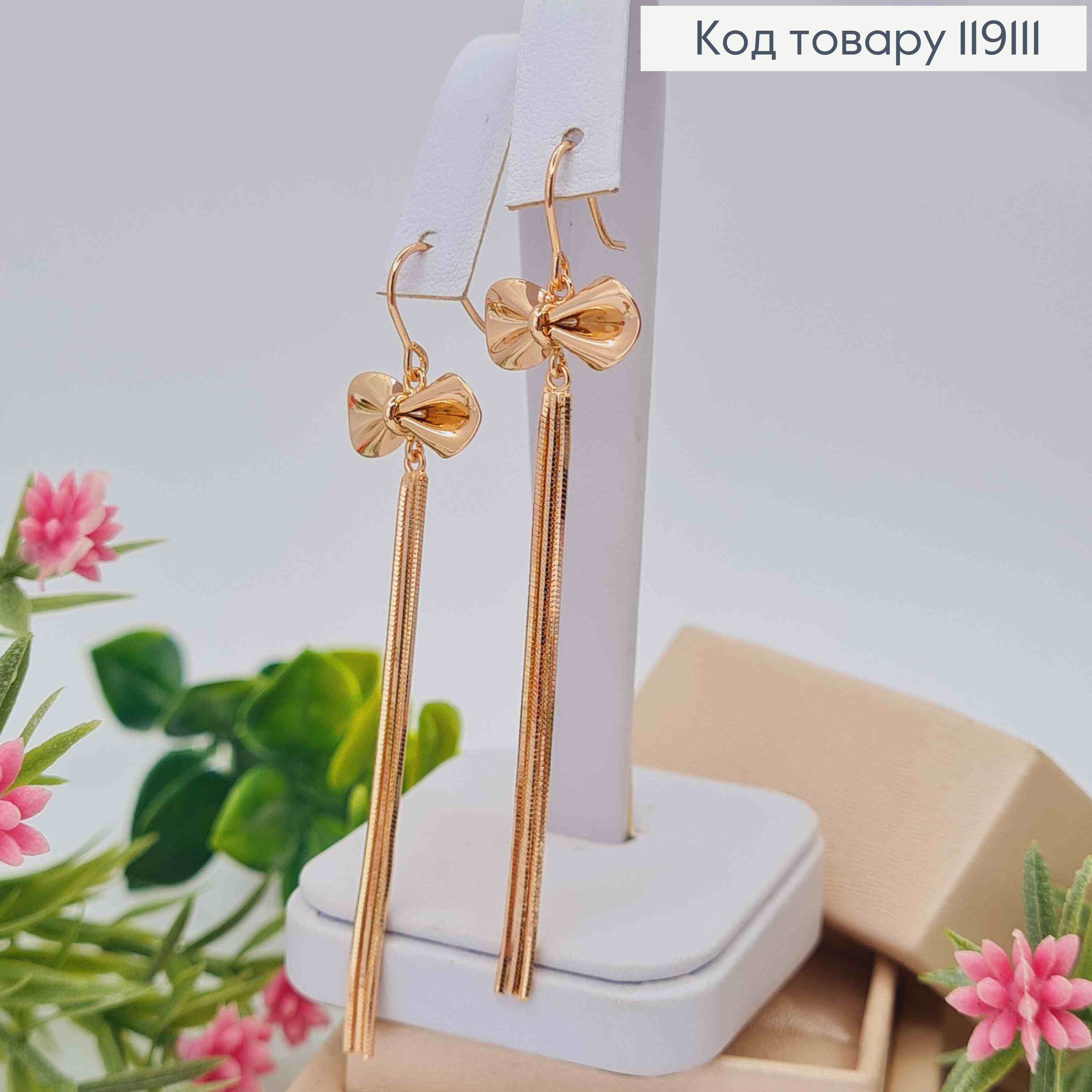Серьги крючки с "Бантиком" и тремя цепочками, 6,8см XUPING 18K