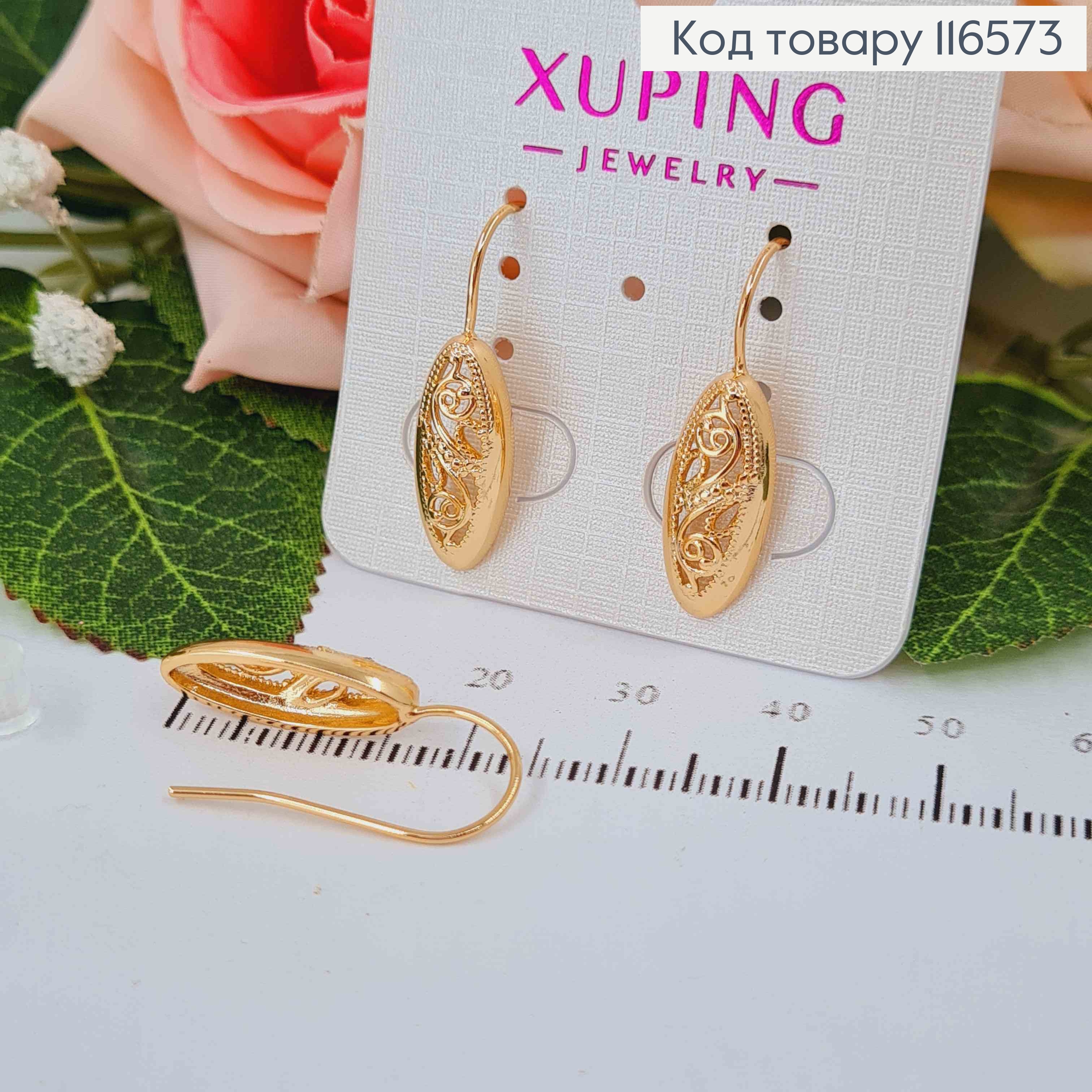 Серьги крючки, с овальными ажурными пластинками, 1,6см, Xuping 18K