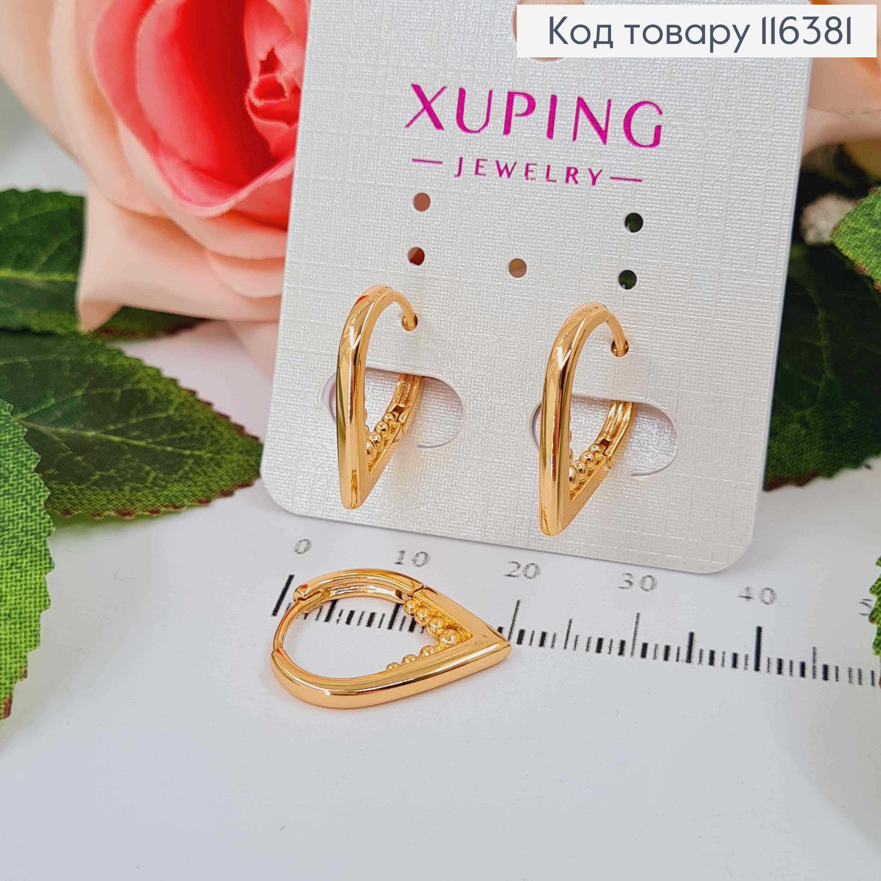 Серьги галочка, с шариками на внутренних гранях, 2см, Xuping 18K
