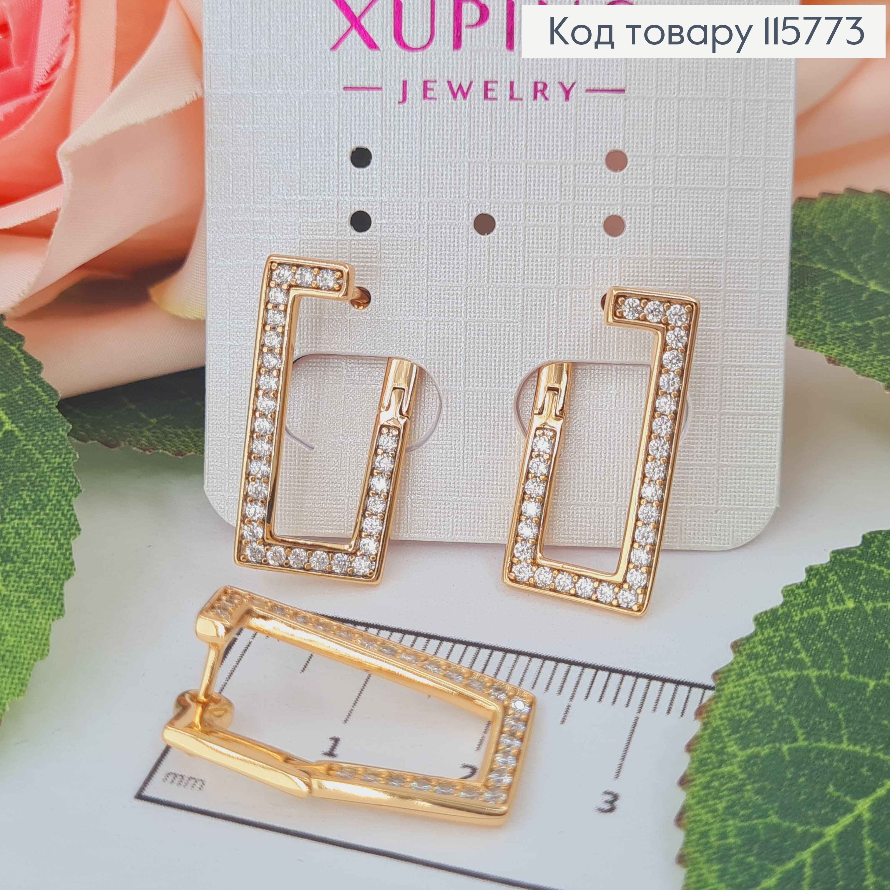 Серьги, "Геометрия" в камешках, 2см, англ. зам. Xuping 18К
