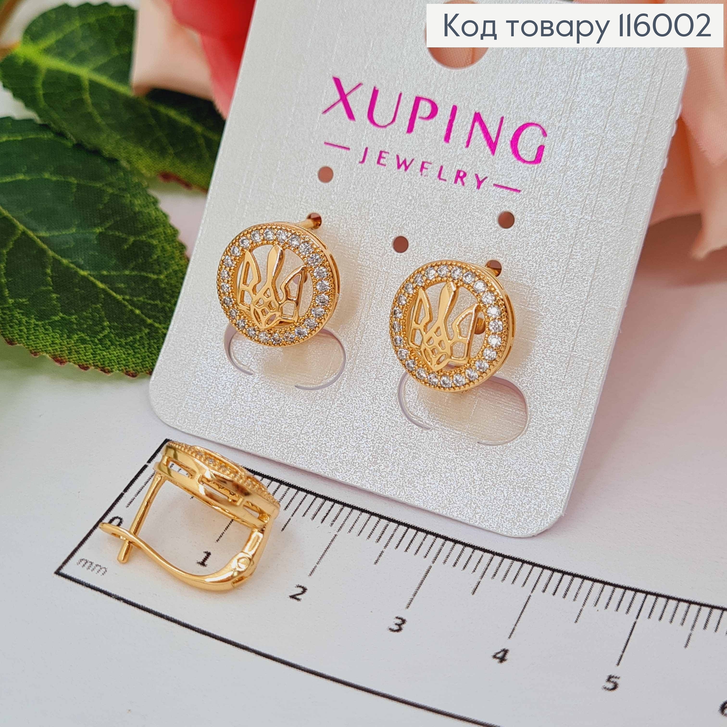 Сережки родированые Герб Тризуб в оправе с камней (англ.застежка), 1,2см, Xuping 180693 фото