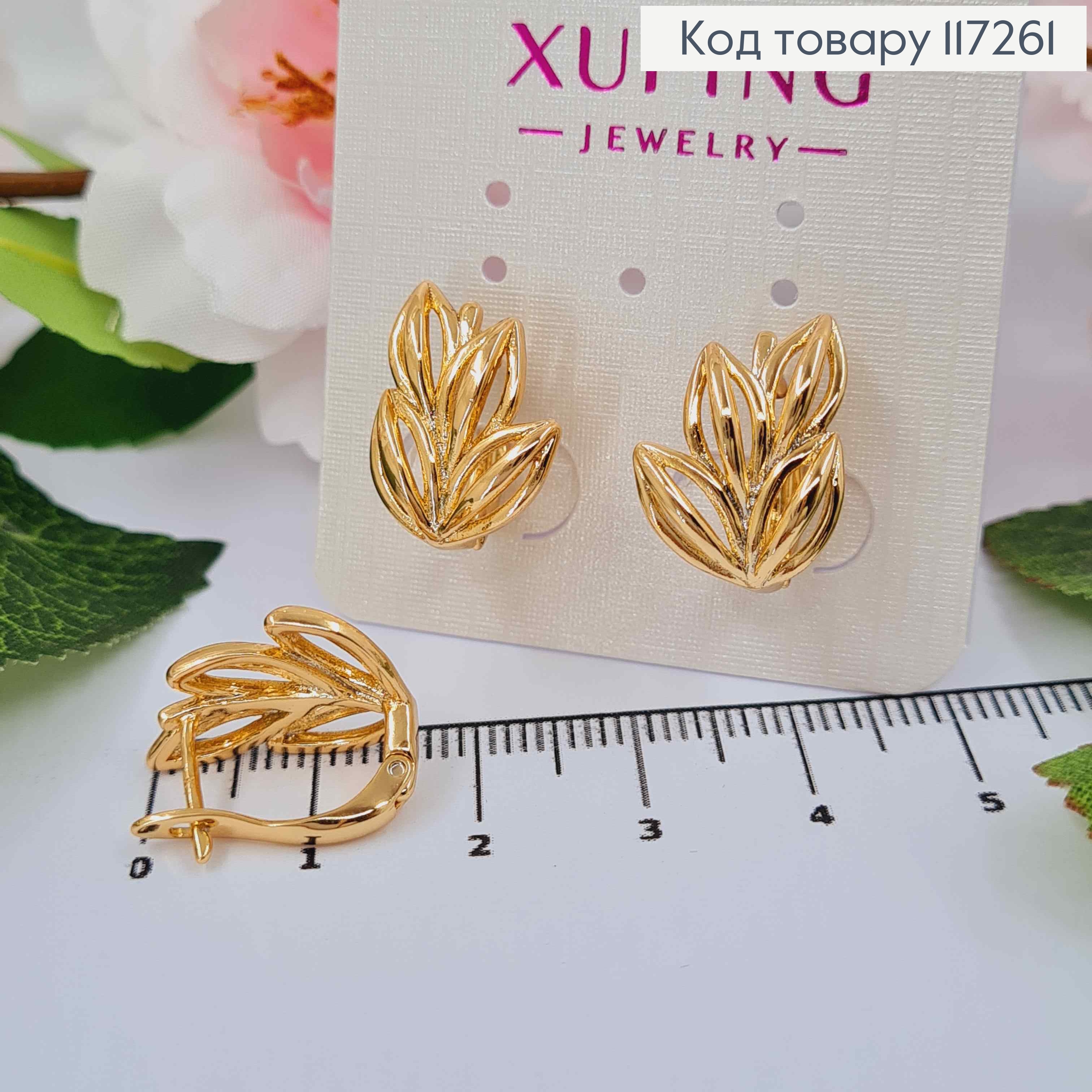 Серьги "Ветка Папоротника", длина 1,8см, англ. застежка XUPING 18K