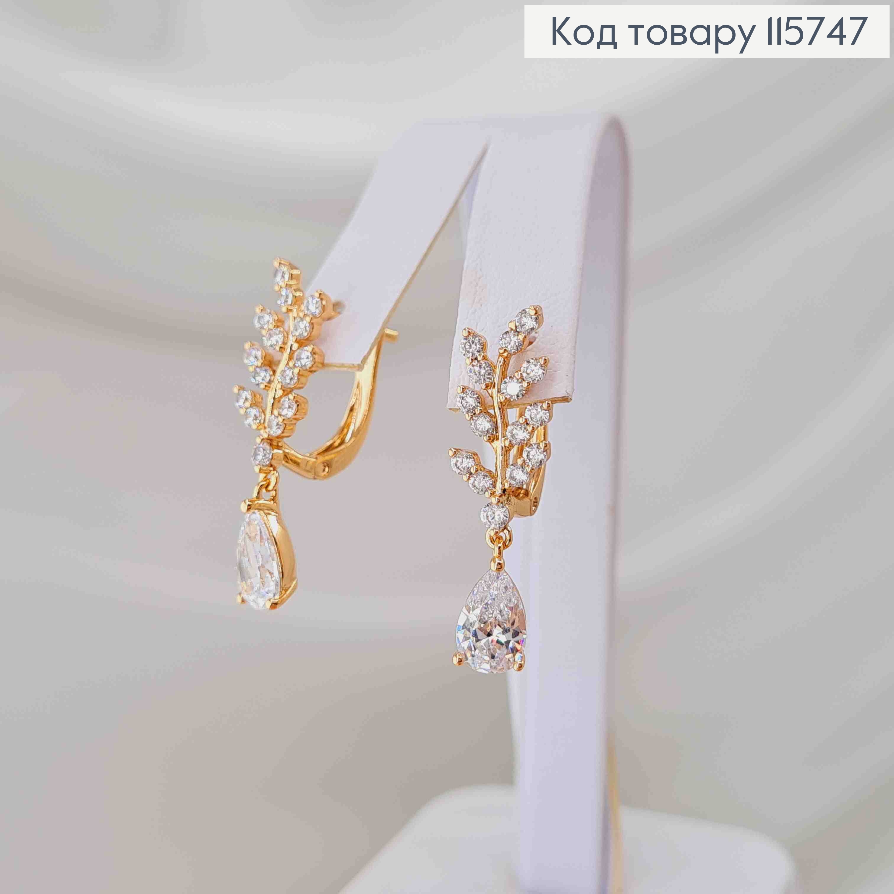 Серьги, Веточки в камешках, с подвеской камешком 7мм, англ. зам. Xuping 18K