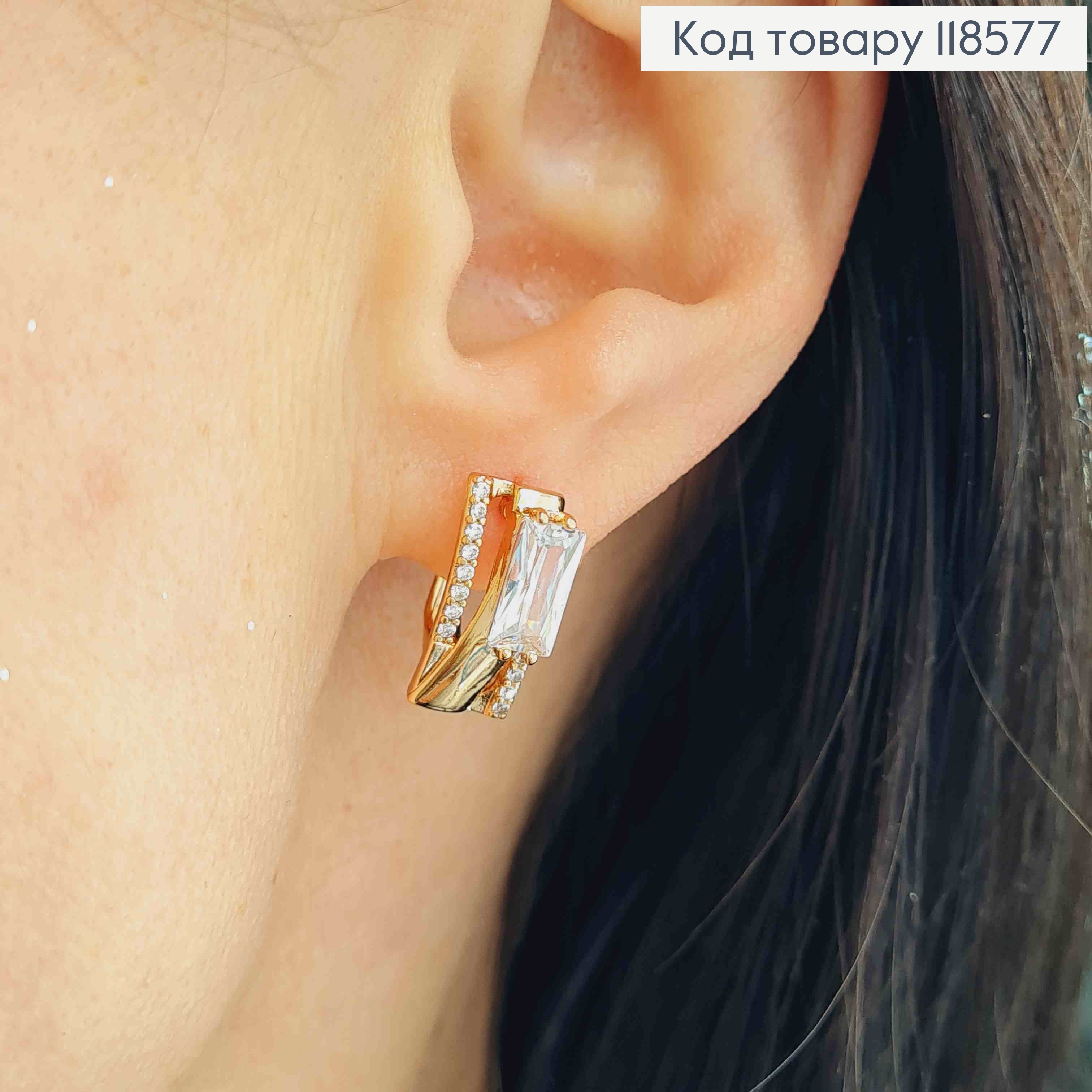 Серьги кольца "Прямоугольные" украшены Блестящими камешками, длиной 2,4см, застежка заколка, Xuping 18К 110199 фото