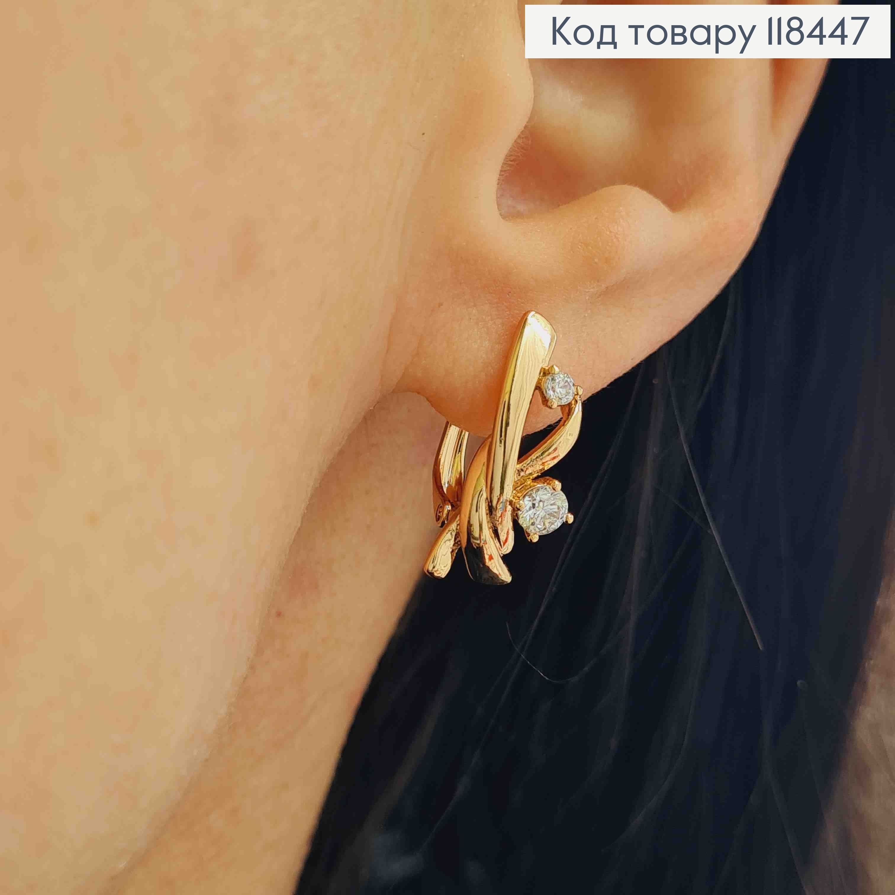 Серьги "Бесконечность" с Блестящими камешками, длина 1,6см, английская застежка, Xuping 18К 110207 фото
