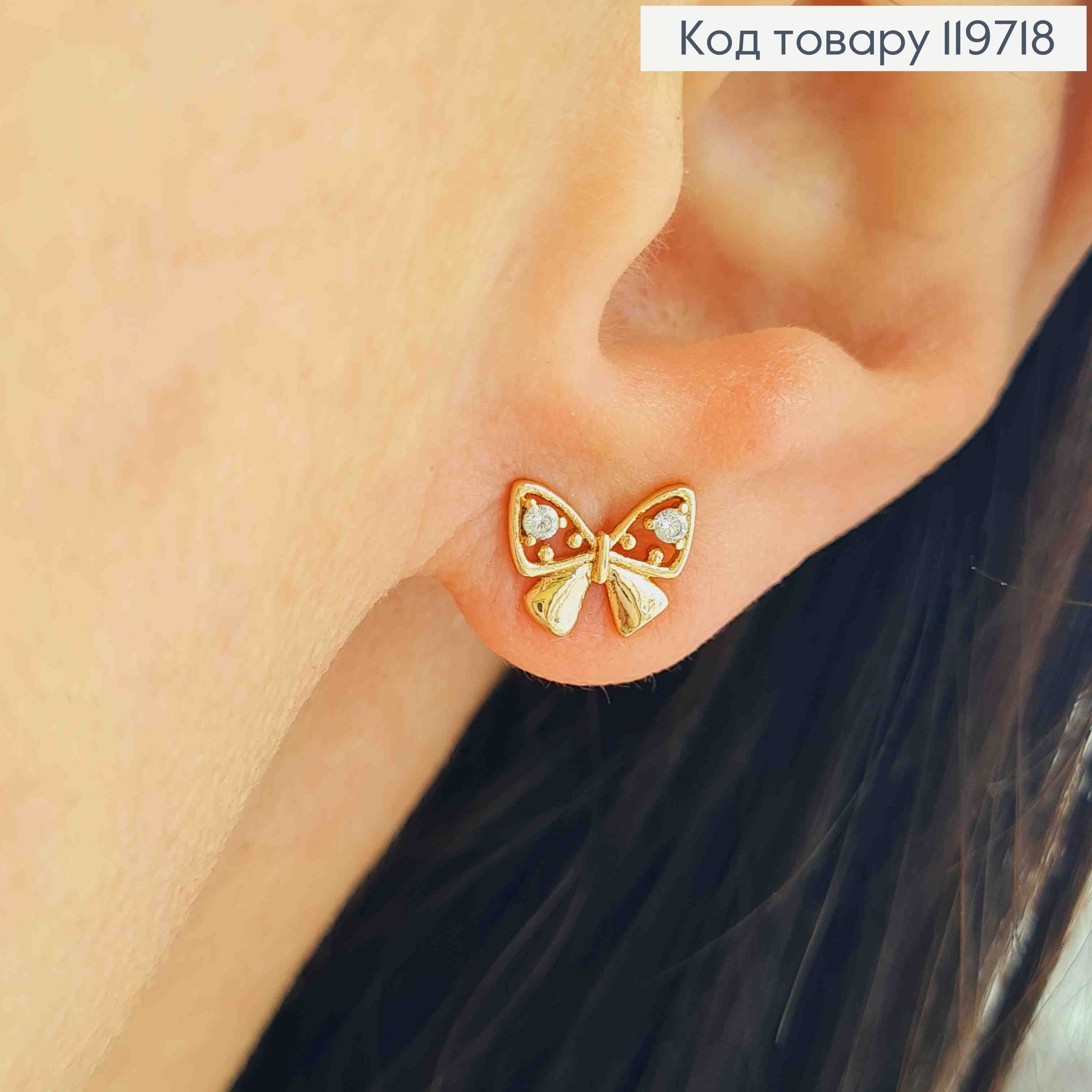 Серьги гвозди "Бантик" украшены Блестящими камешками, длина 0,7см, Xuping 18К.