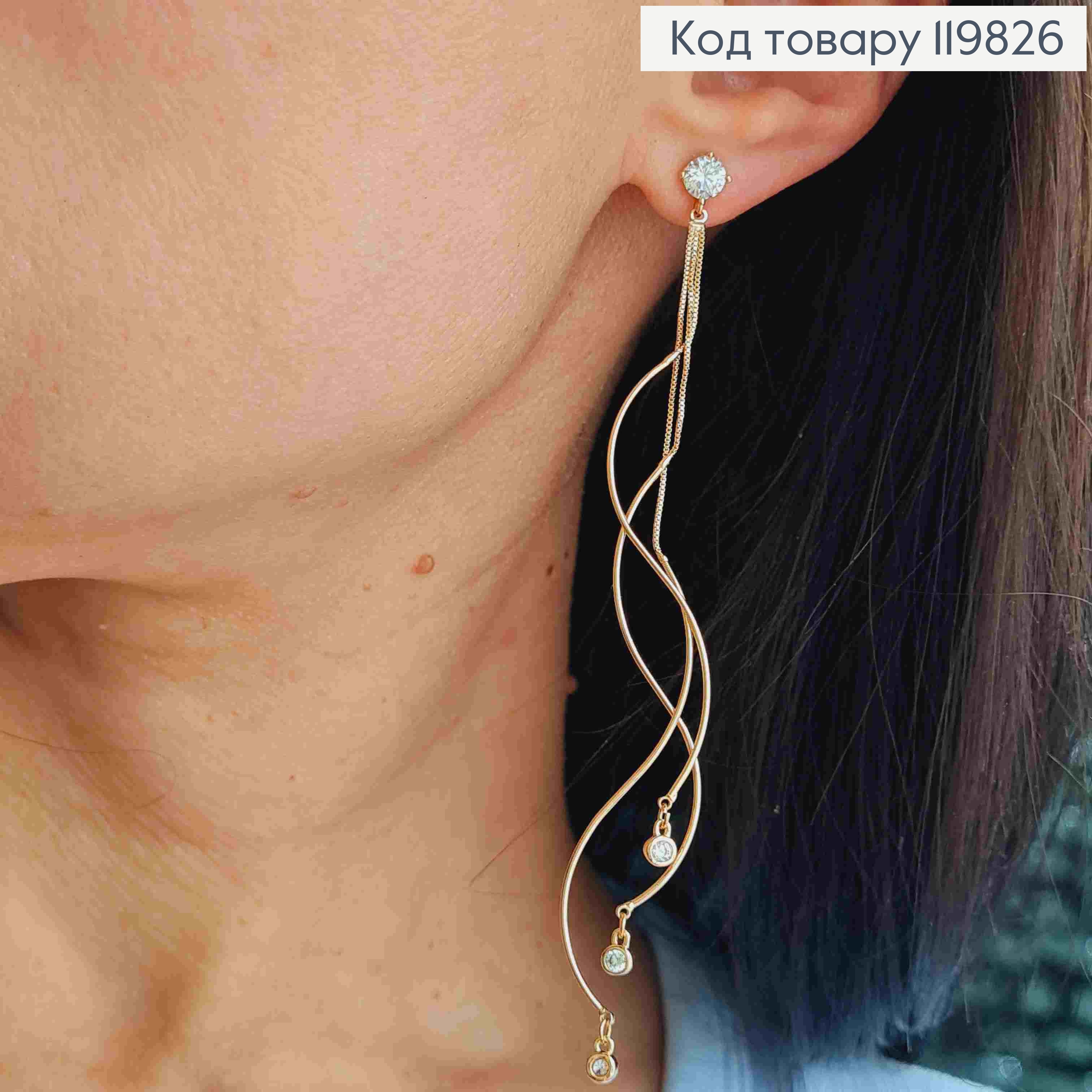 Серьги "Стрели" украшены Блестящими камешками, длина 2,6см, английская застежка, Xuping 18К. 110201 фото