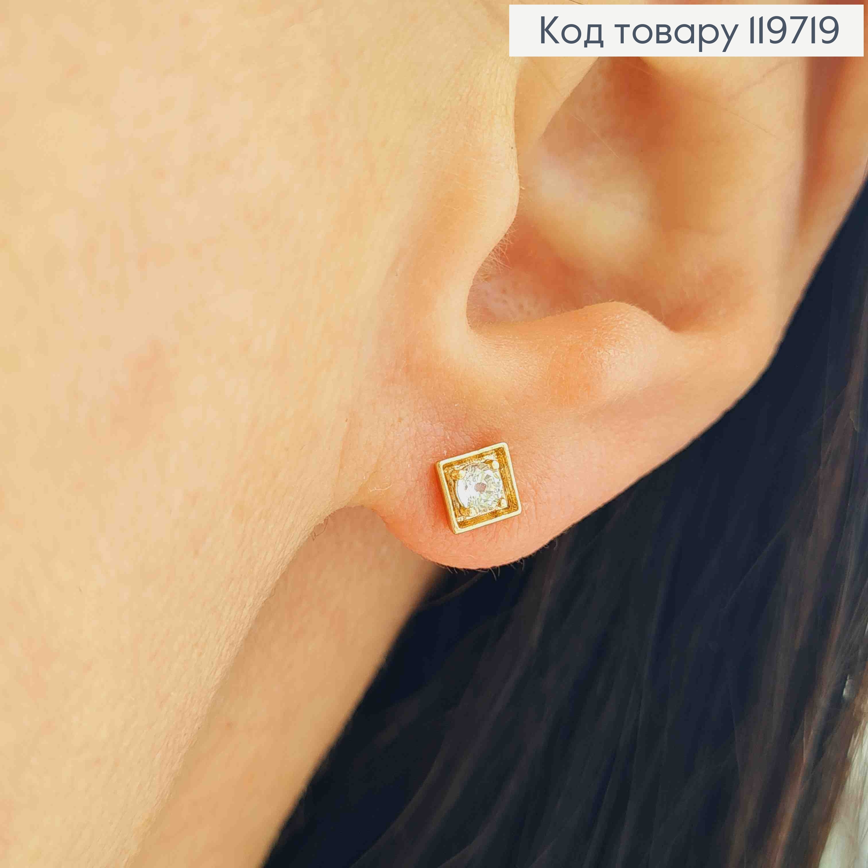 Серьги гвоздики Блестящий камень в квадратной оправе, длина 0,5 см, Xuping 18К