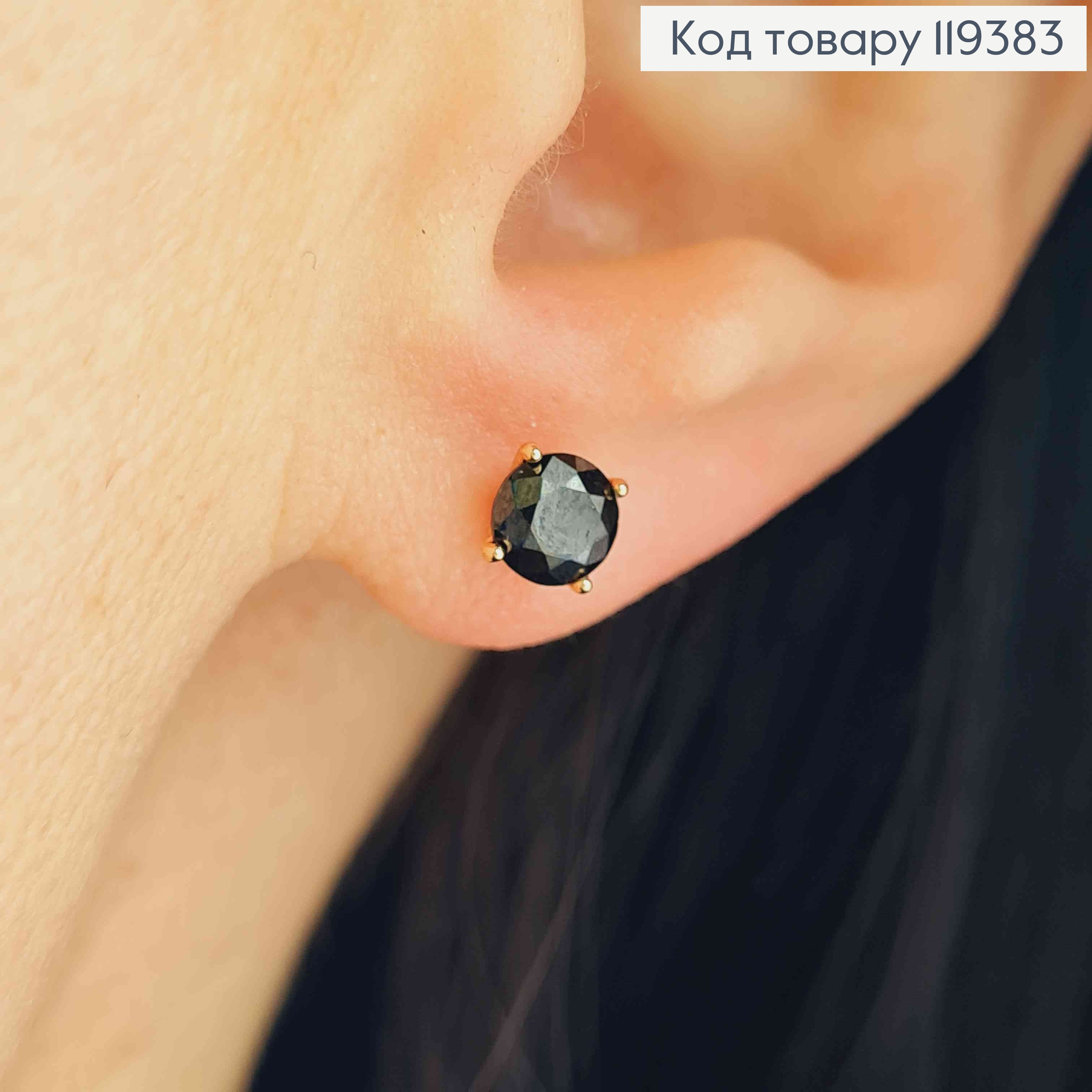 Серьги гвозди Черный камешек, 0,5см, Xuping 18К