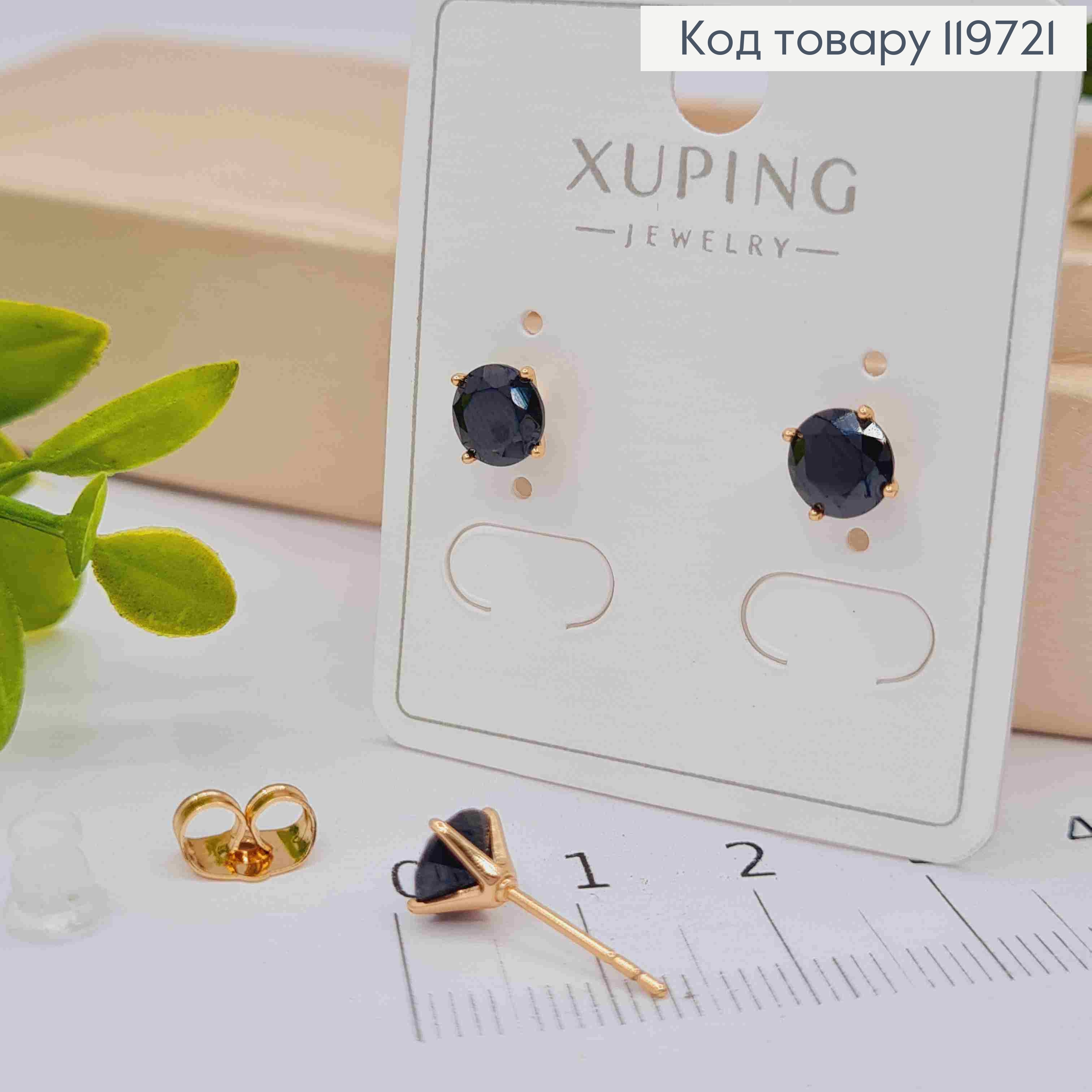 Серьги гвоздики Черный камень, 0,6 см, Xuping 18К