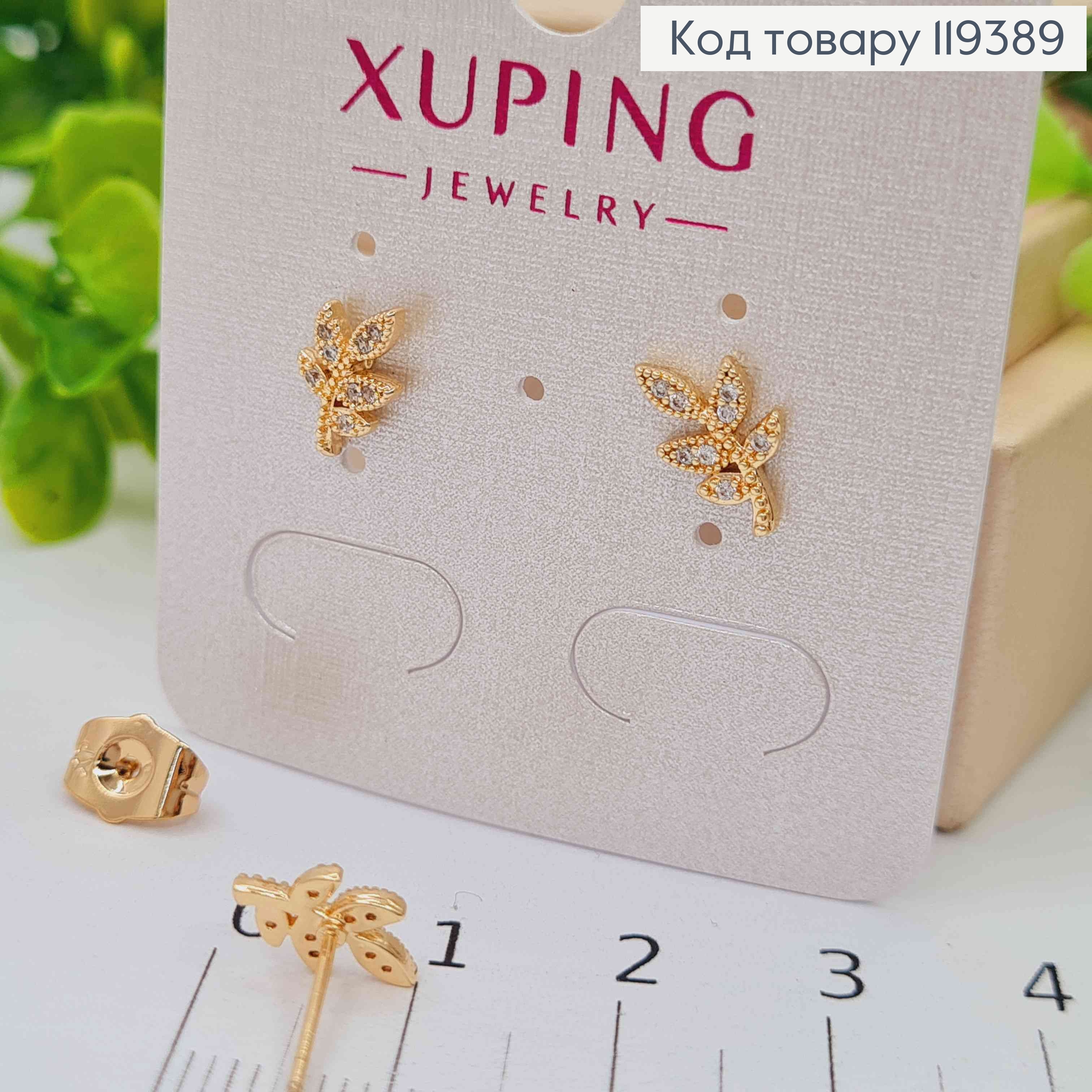 Серьги гвозди "Веточка" украшены Блестящими камешками, 1см, Xuping 18К