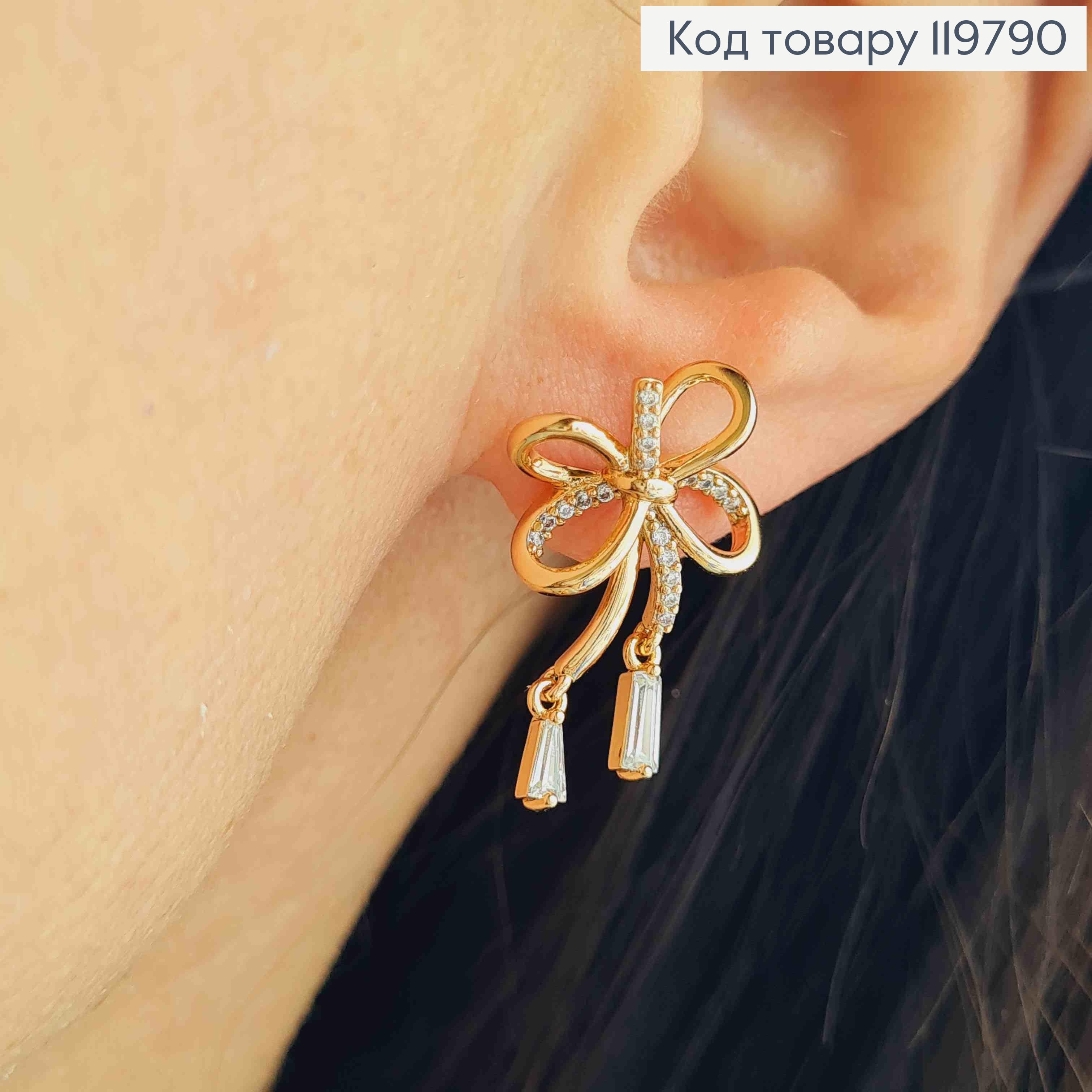 Серьги "Бесконечность" с Блестящими камешками, длина 1,6см, английская застежка, Xuping 18К 110207 фото
