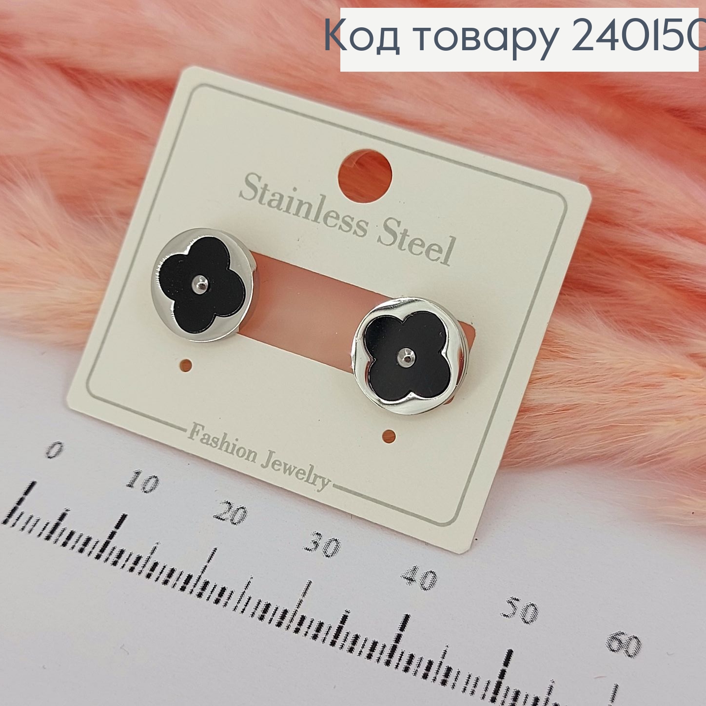 Серьги гвозди Цветочек серебряный цвет с черным камнем Stainless Steel
