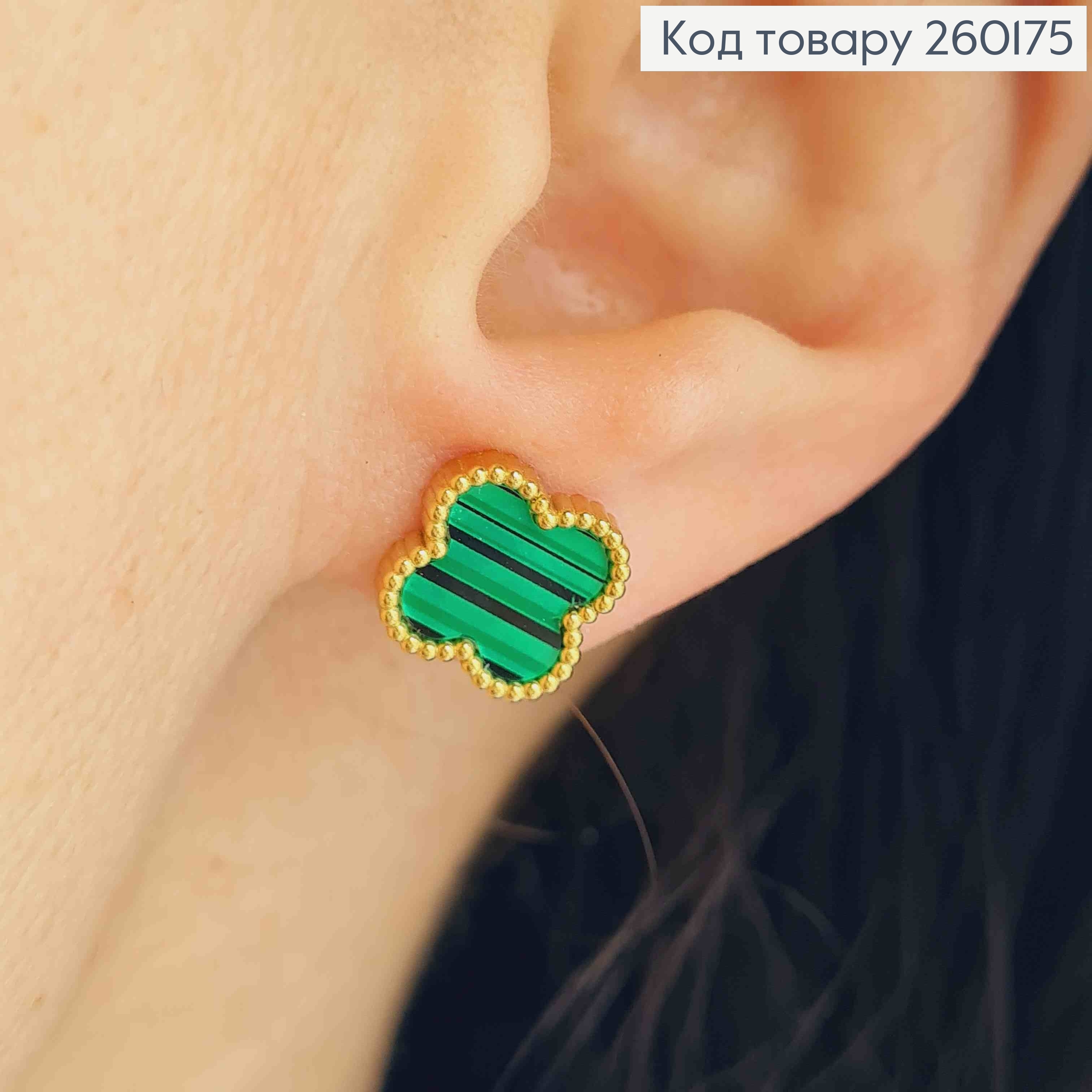 Серьги гвоздики, лимонного цвета, с зеленой эмалью, "Van Cleef", 1см, сталь Stainless Steel