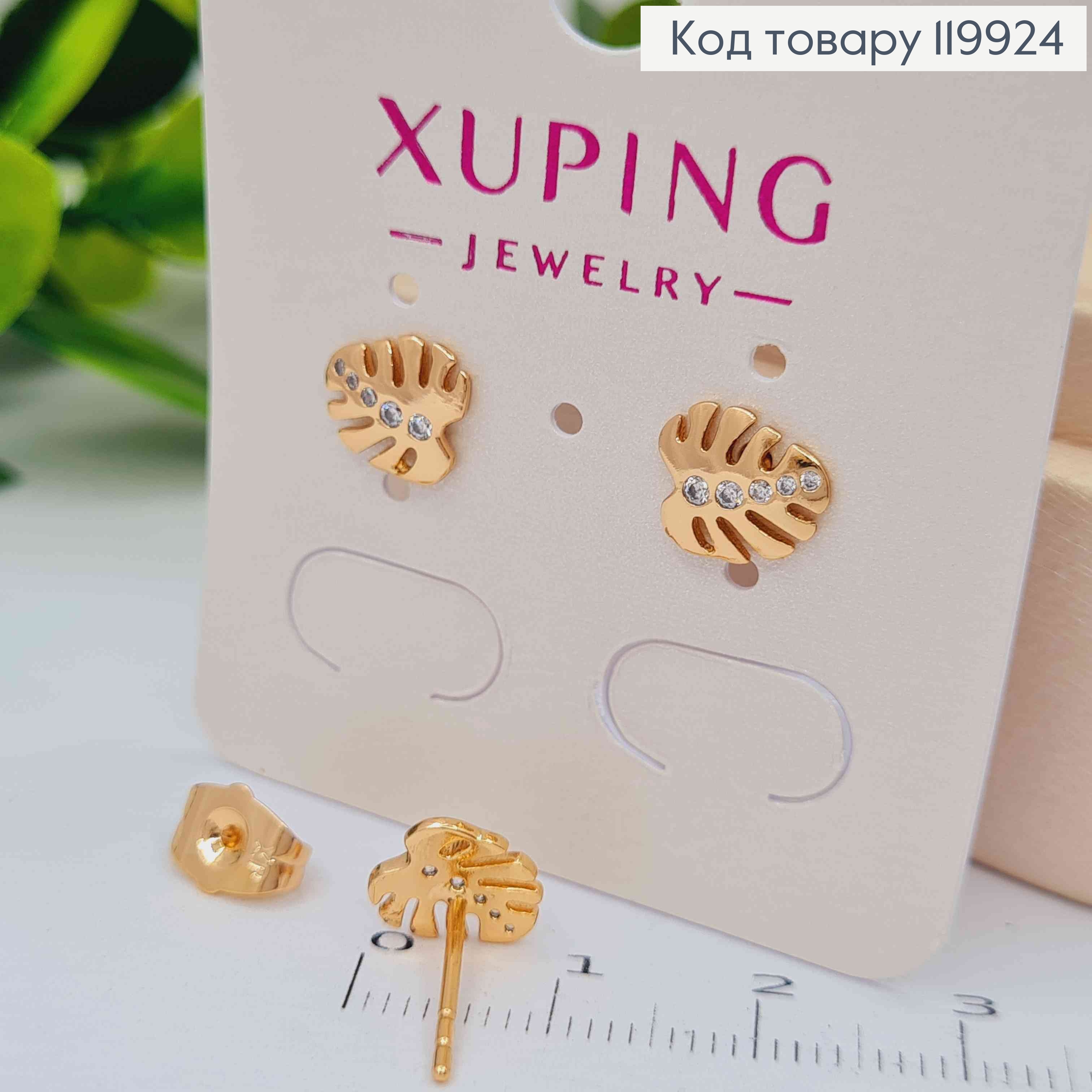 Серьги гвоздики "Листочки" с Блестящими камешками, размером 0,8см, Xuping 18К
