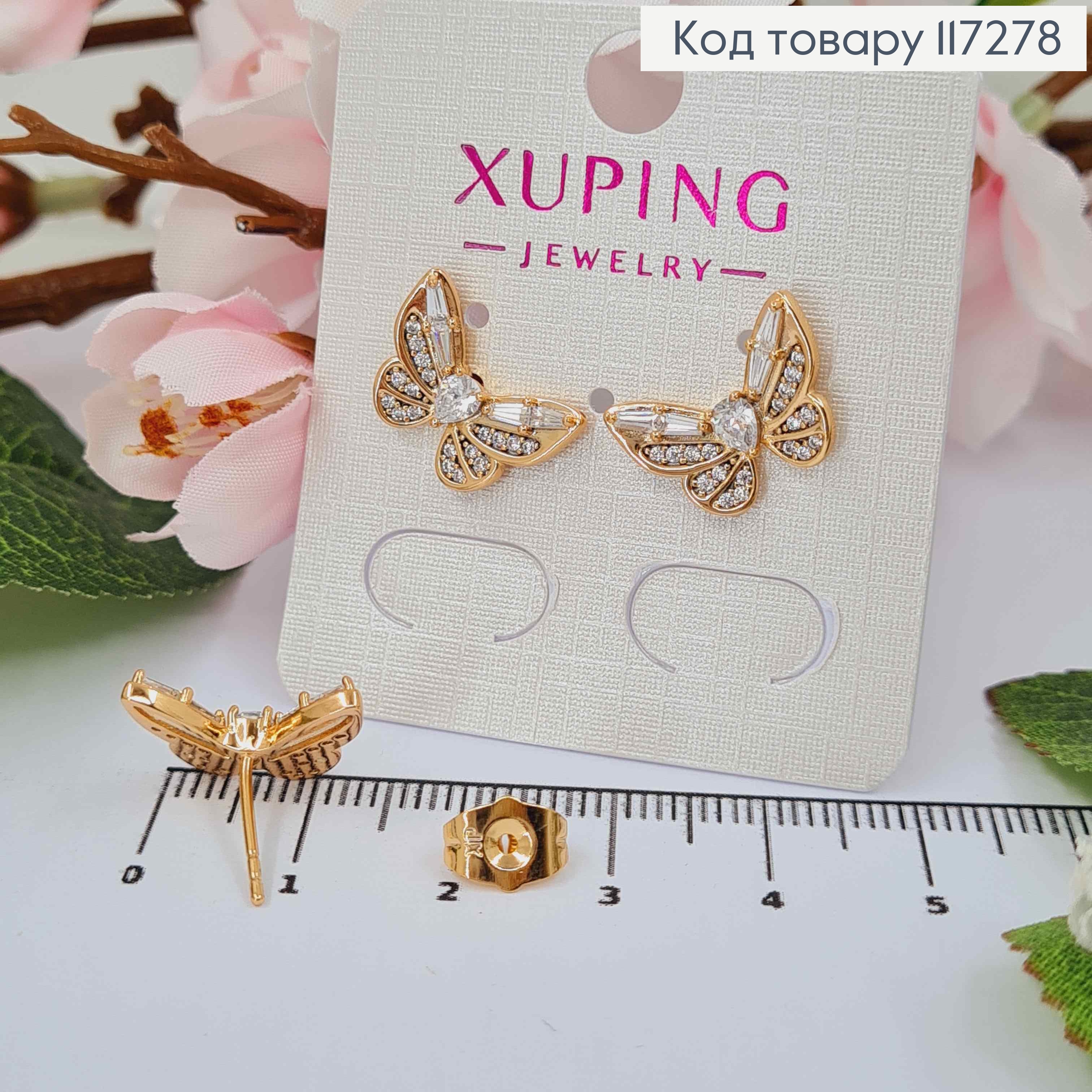 Серьги гвоздики, Бабочки с камешками 1,6см, XUPING 18K