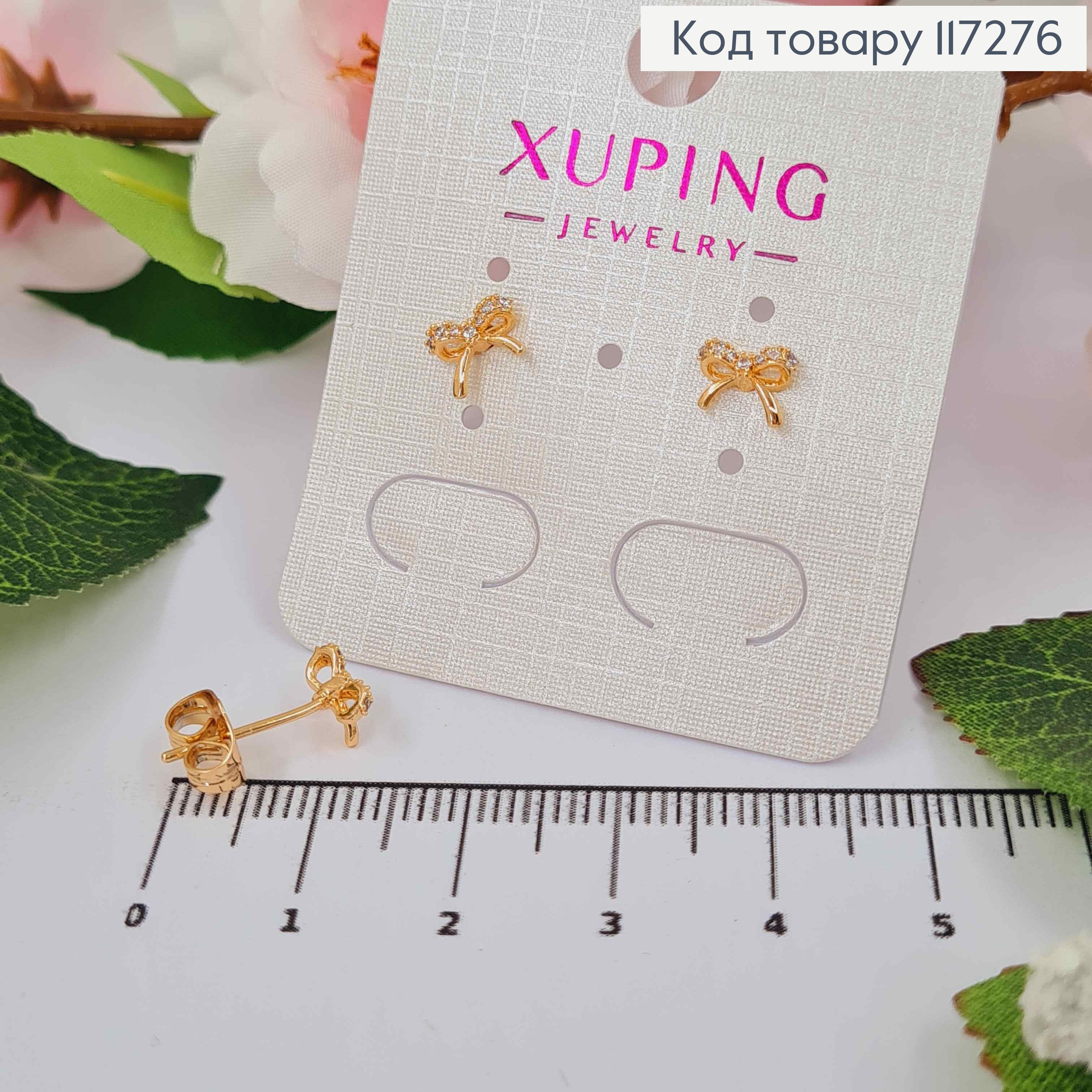 Серьги гвоздики, мини Бантики в камнях 7мм, XUPING 18K