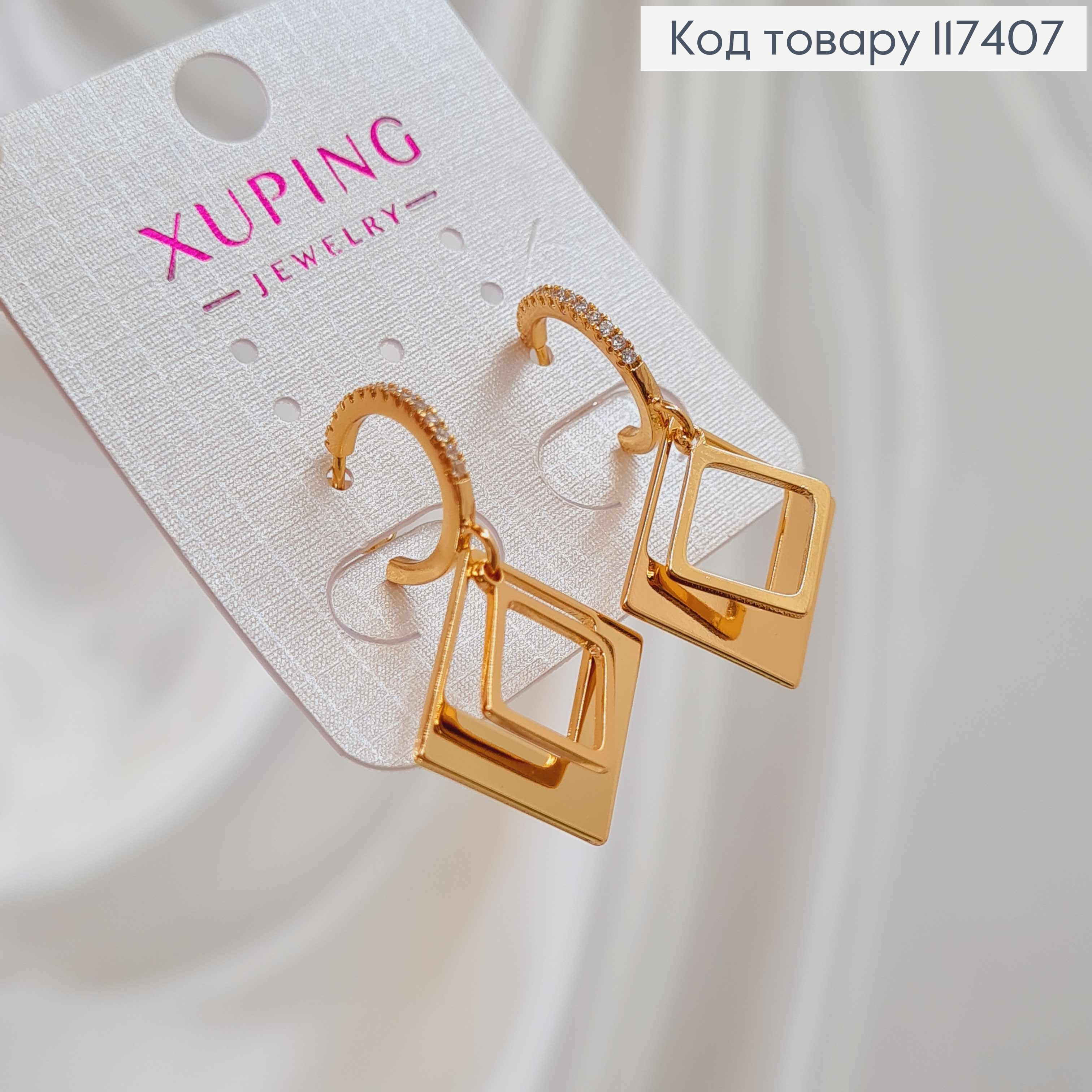 Серьги с квадратным блестящим камнем, 1,9см, английская застежка, Xuping 18K 110257 фото