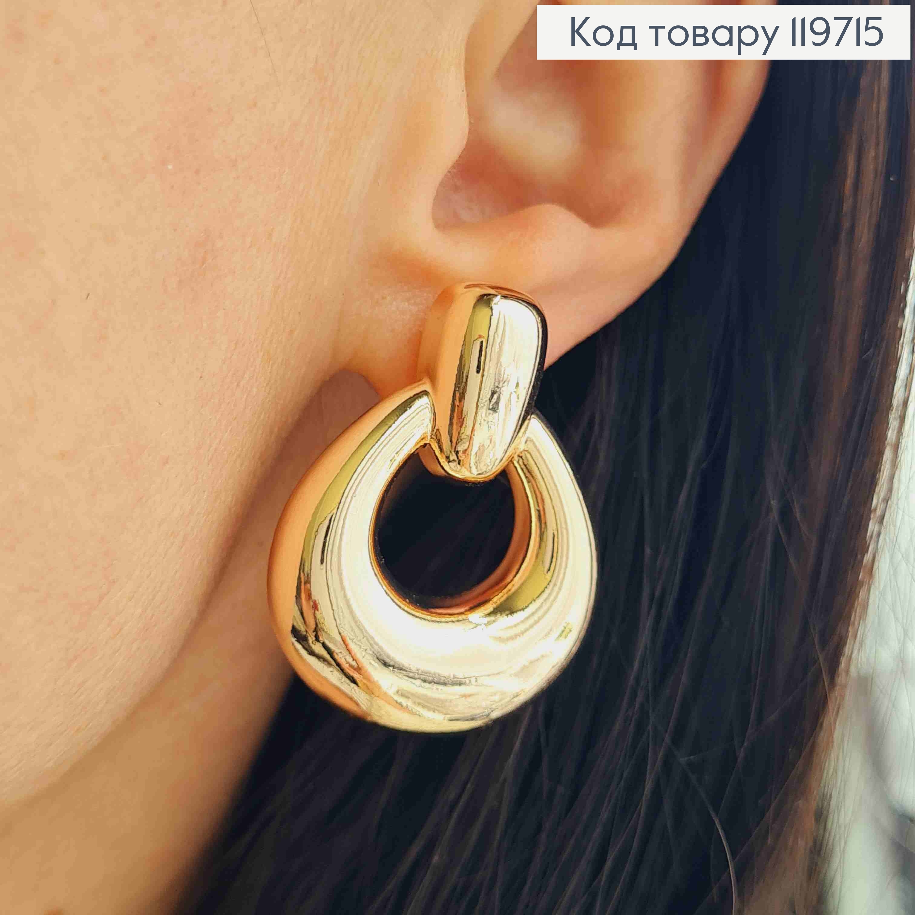 Серьги кольца "Овальные" фактурные, ширина 2мм, длина 1,7см, Xuping 18К. 110197 фото