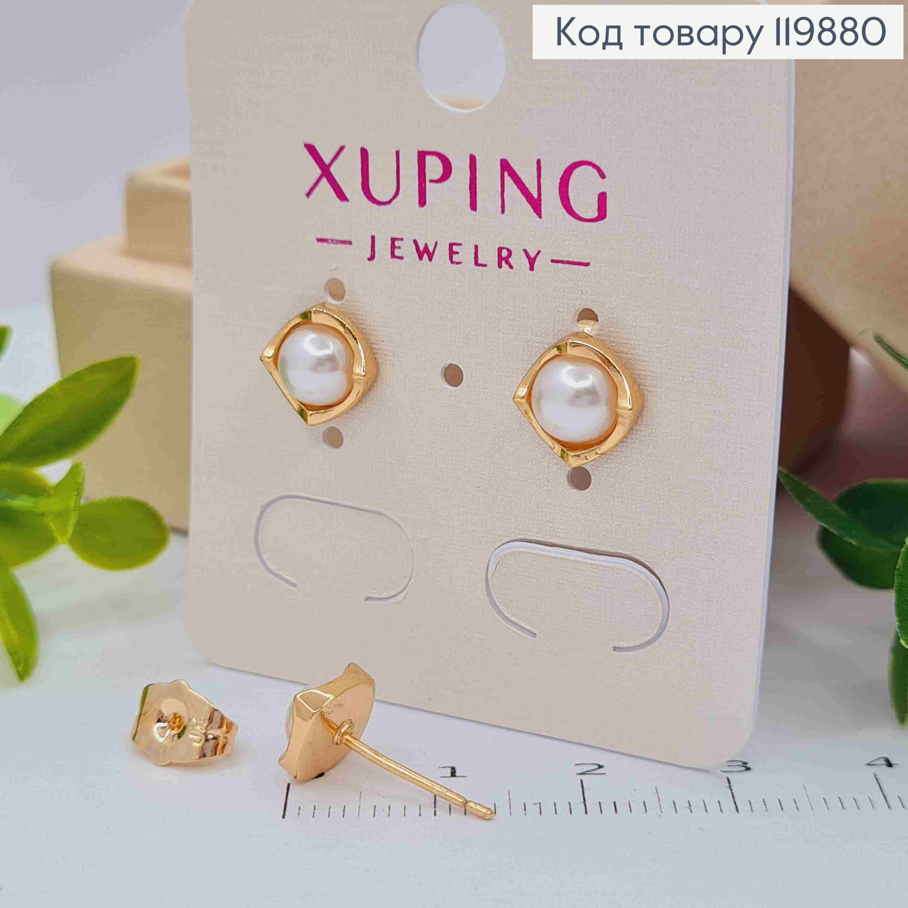 Серьги гвоздики Жемчужка в квадратной оправе, размером 0,8 см, Xuping 18K