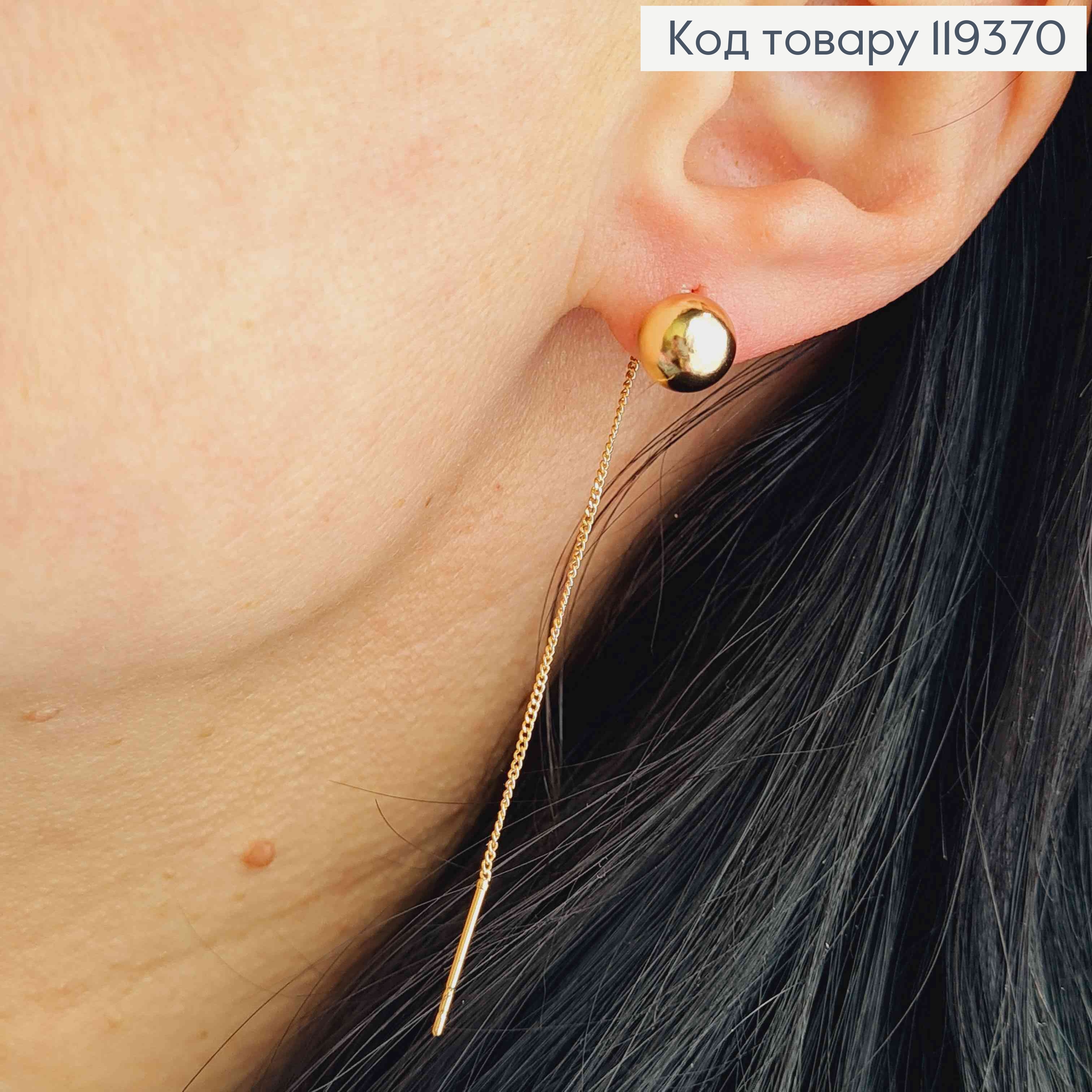 Серьги гвозди-протяжки Шарик (8мм) на цепочке, 6,5см, Xuping 18K