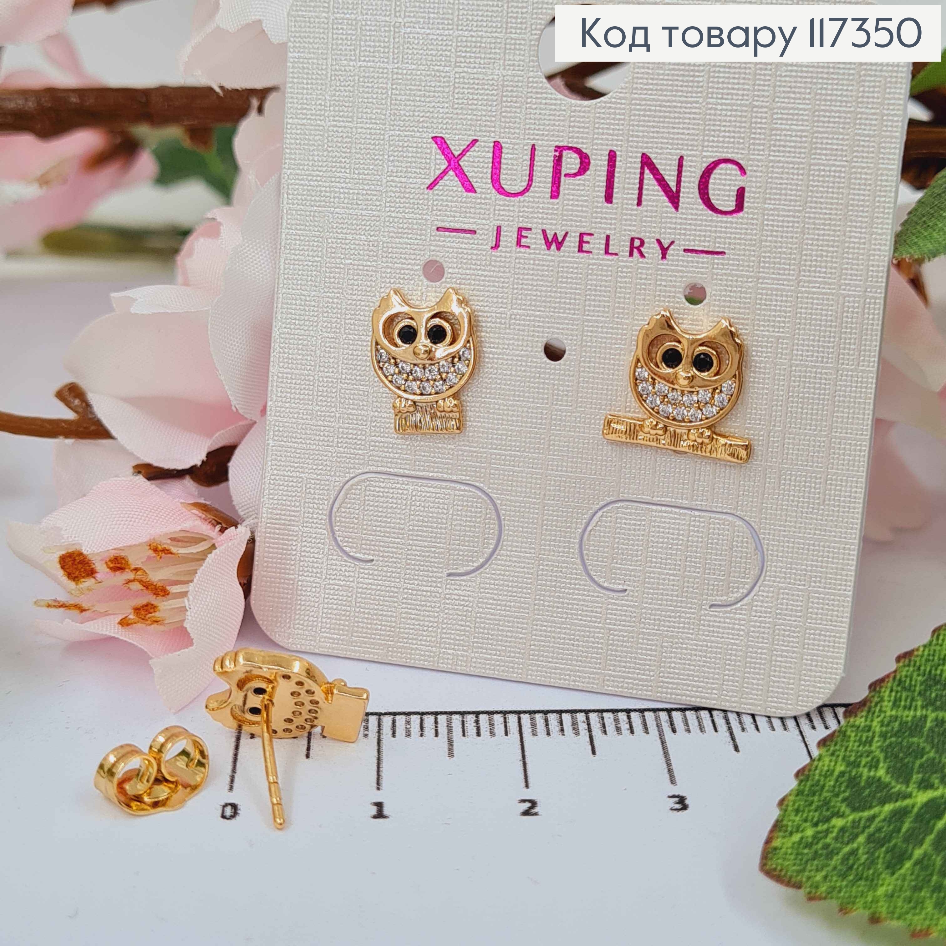 Серьги гвоздики, Сова с камешками 1см, Xuping 18K