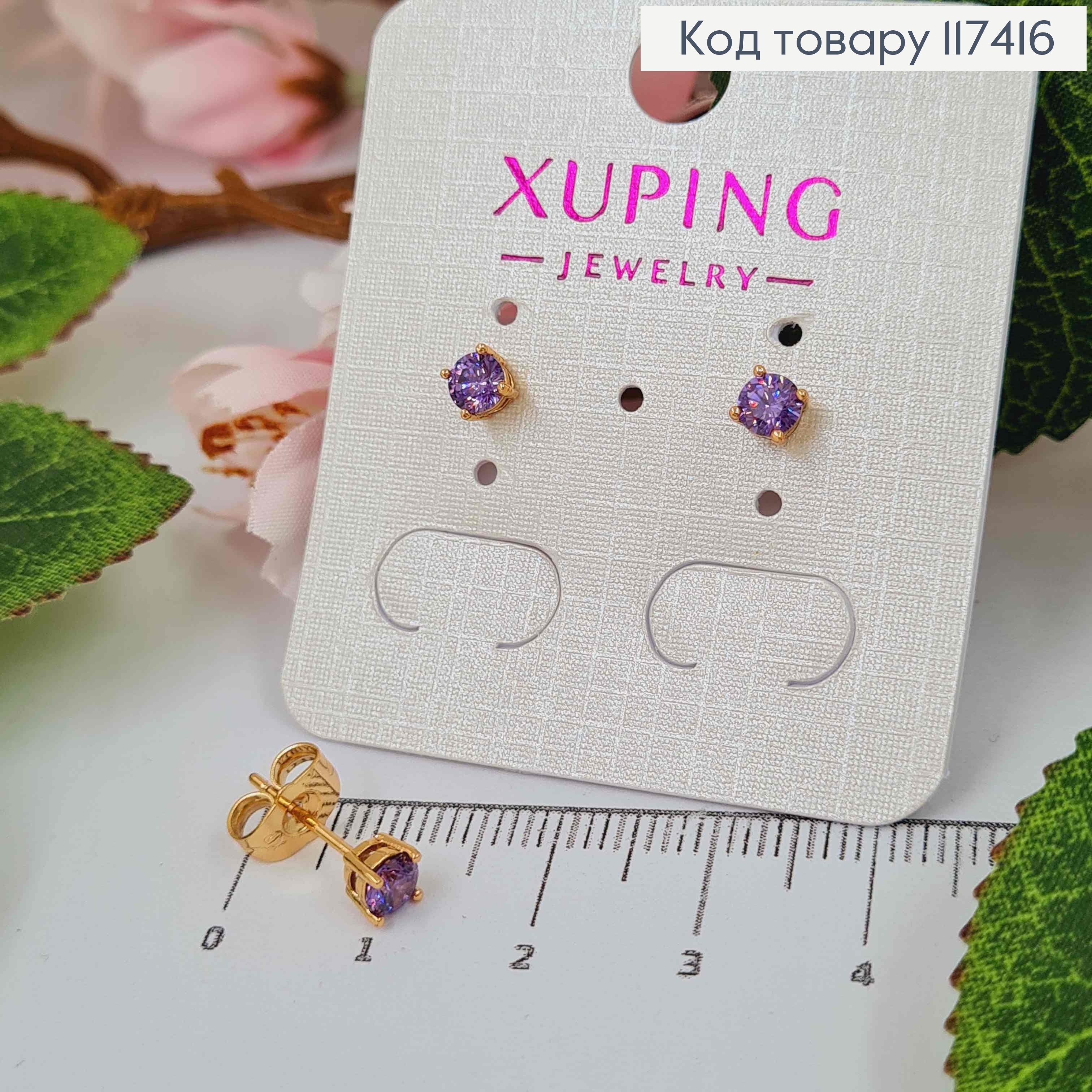 Серьги гвозди, с Сиреневым камушком, 4мм, XUPING 18K