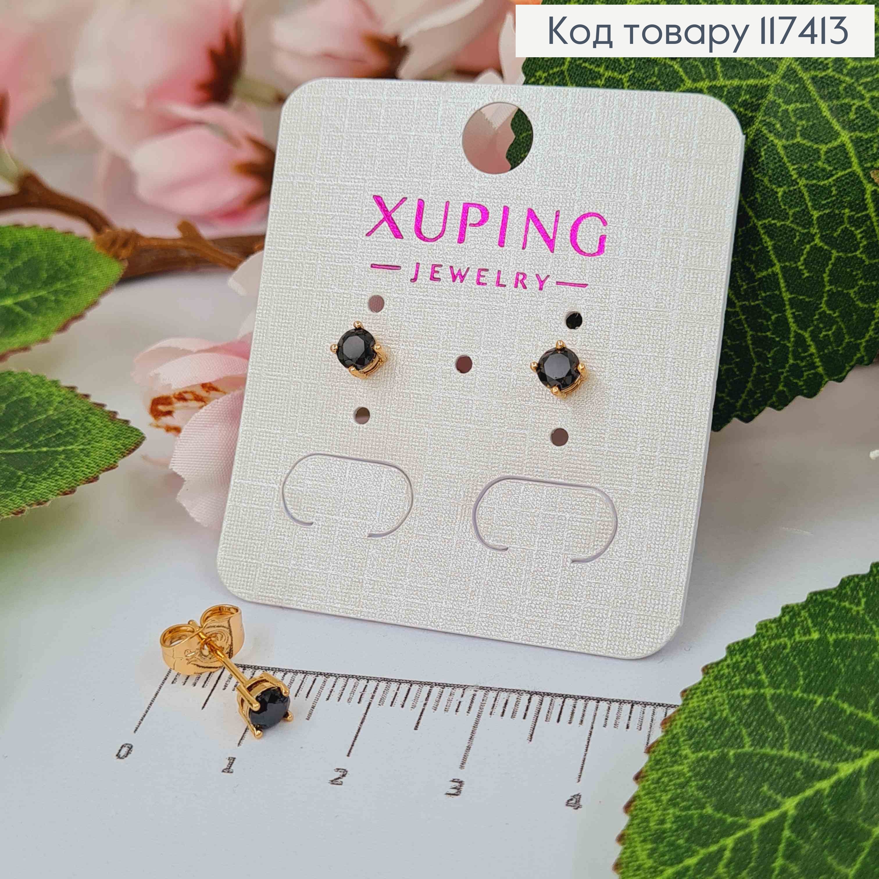 Серьги гвоздики, с Черным камушком, 4мм, XUPING 18K