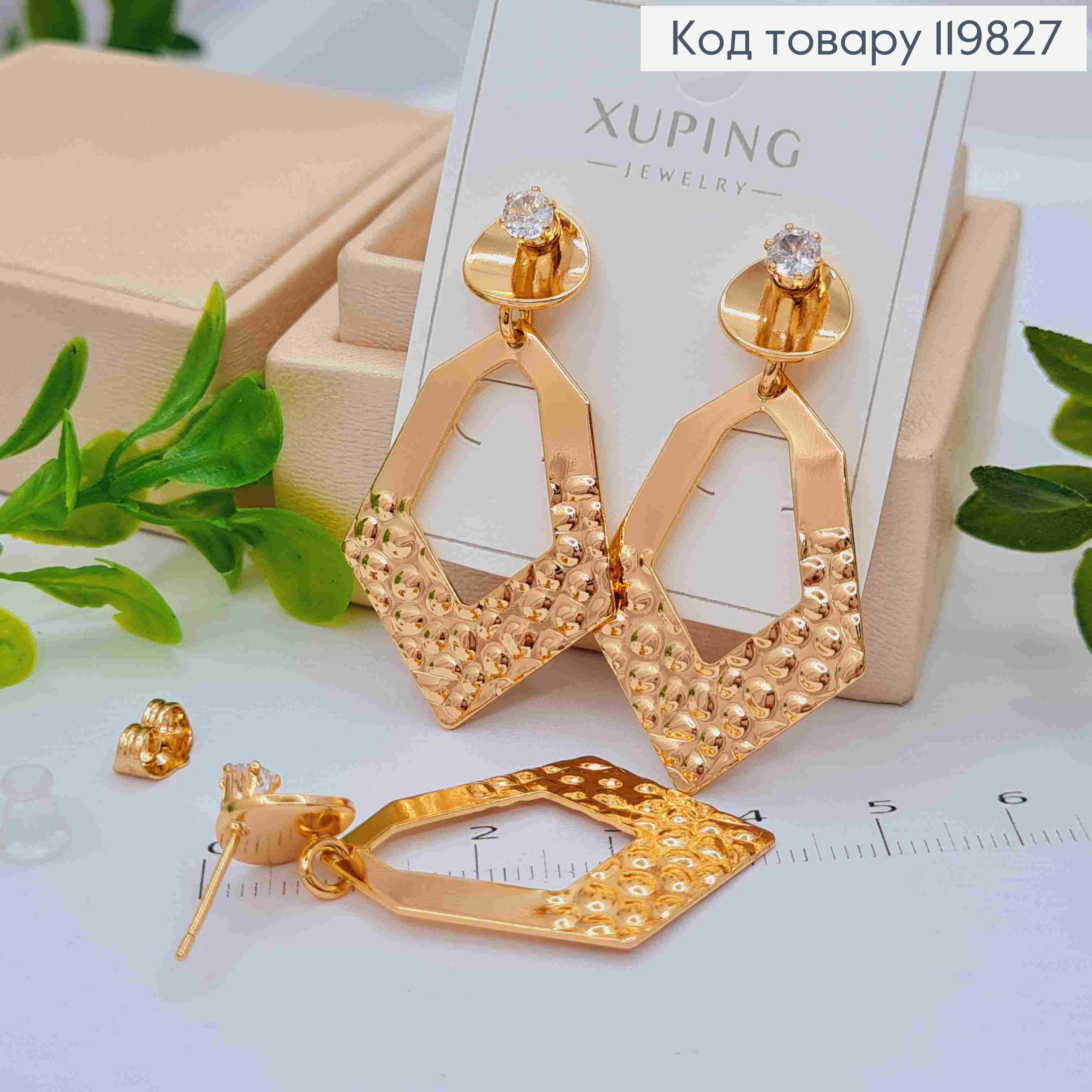Серьги прямоугольные Фактурные, длина 1,7см, английская застежка, Xuping 18К 110203 фото
