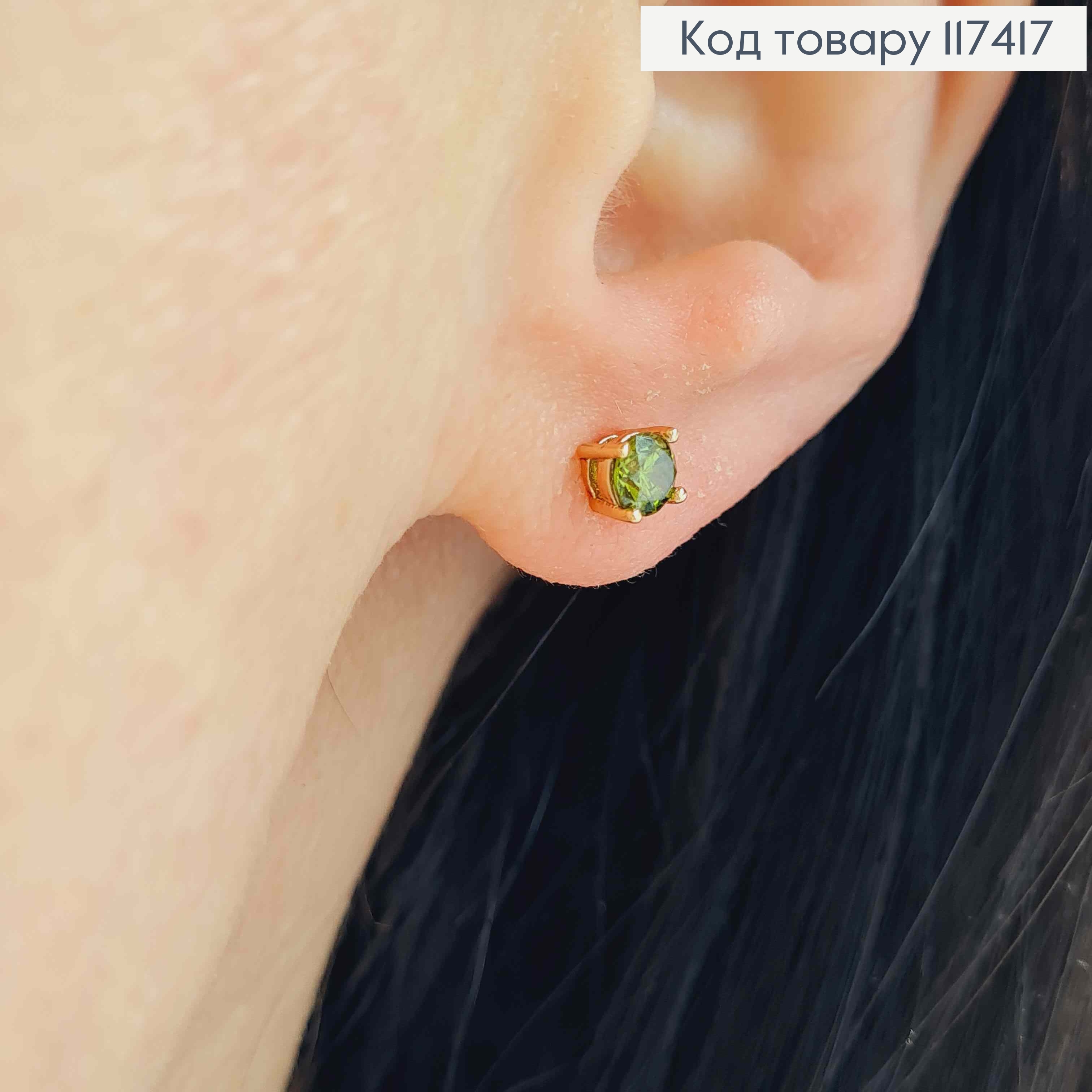 Серьги гвоздики, с Салатовым камушком, 4мм, XUPING 18K