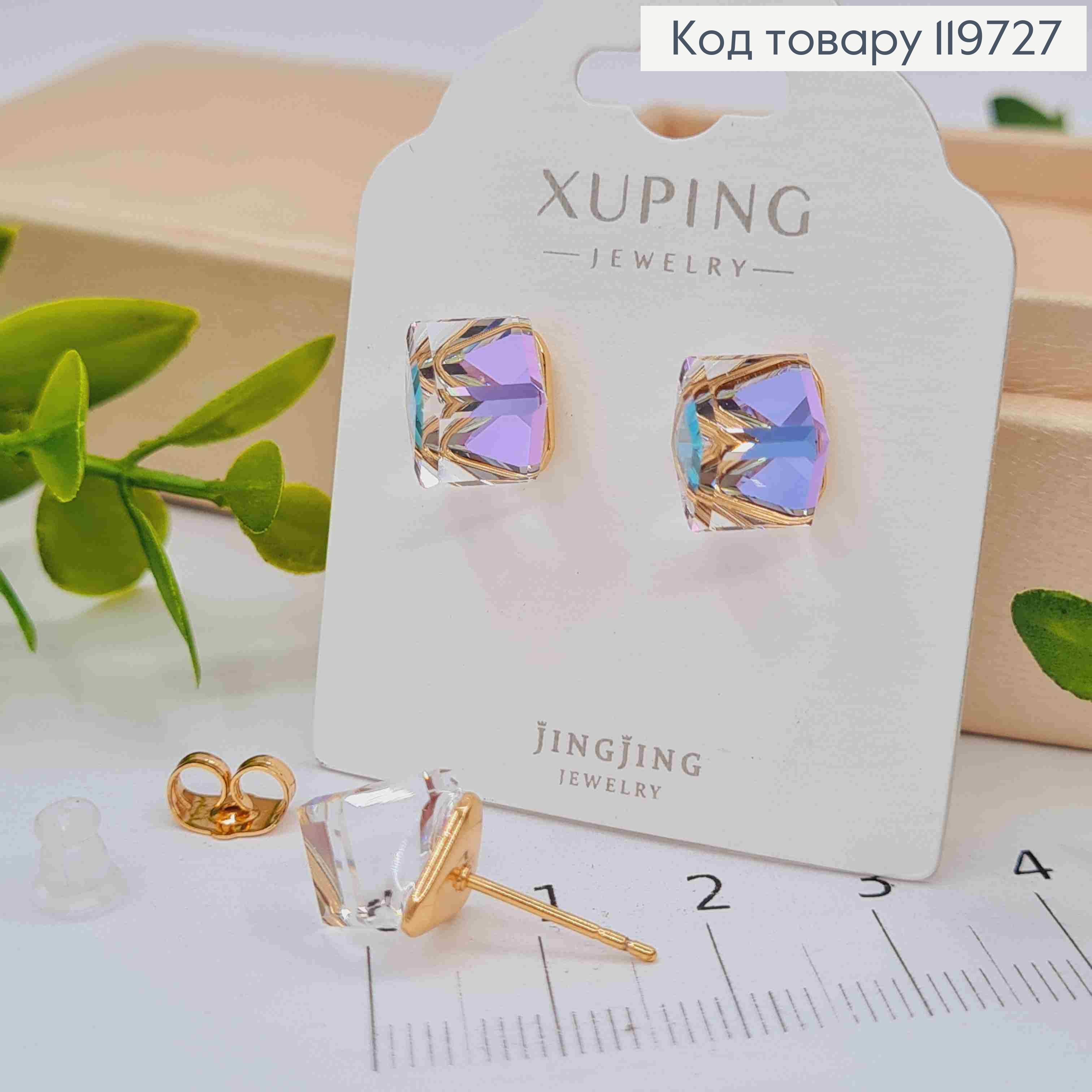 Серьги гвоздики с Фиолетово-Зеленым камнем Сваровски, 0,9 см, XUPING 18K 119852 фото