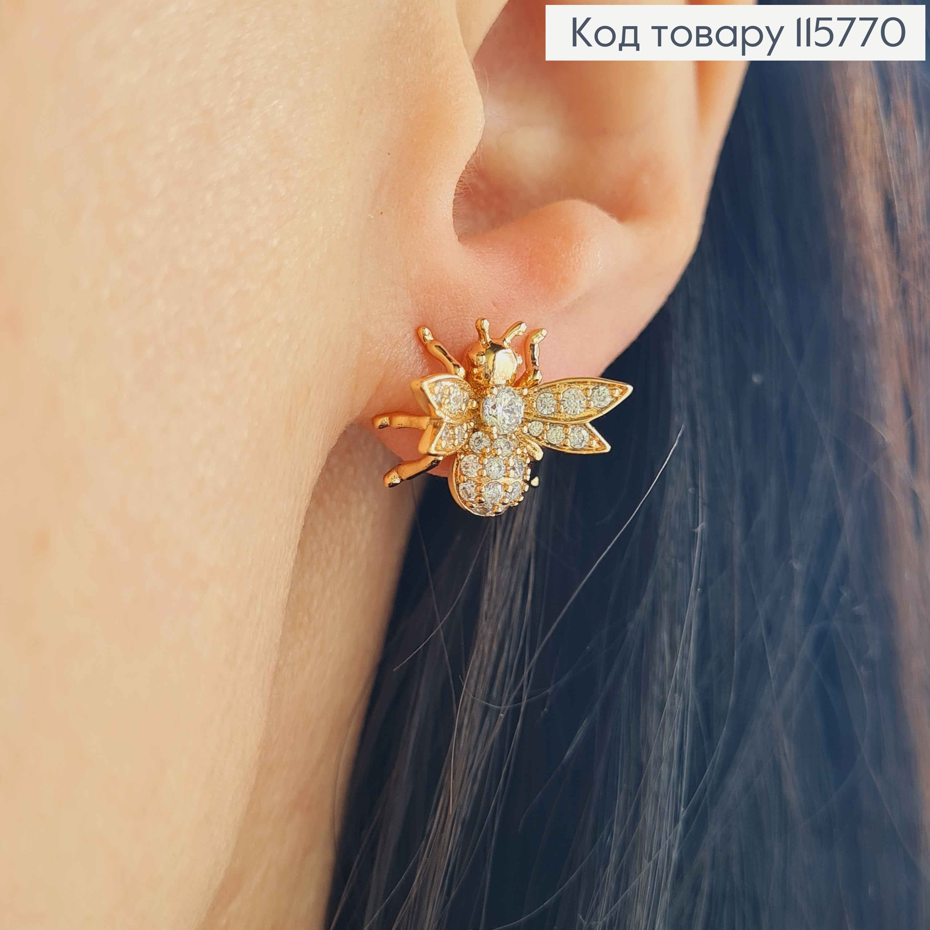 Серьги гвоздики, "Бджолина Бжоли" в камешках, 1,4см Xuping 18К