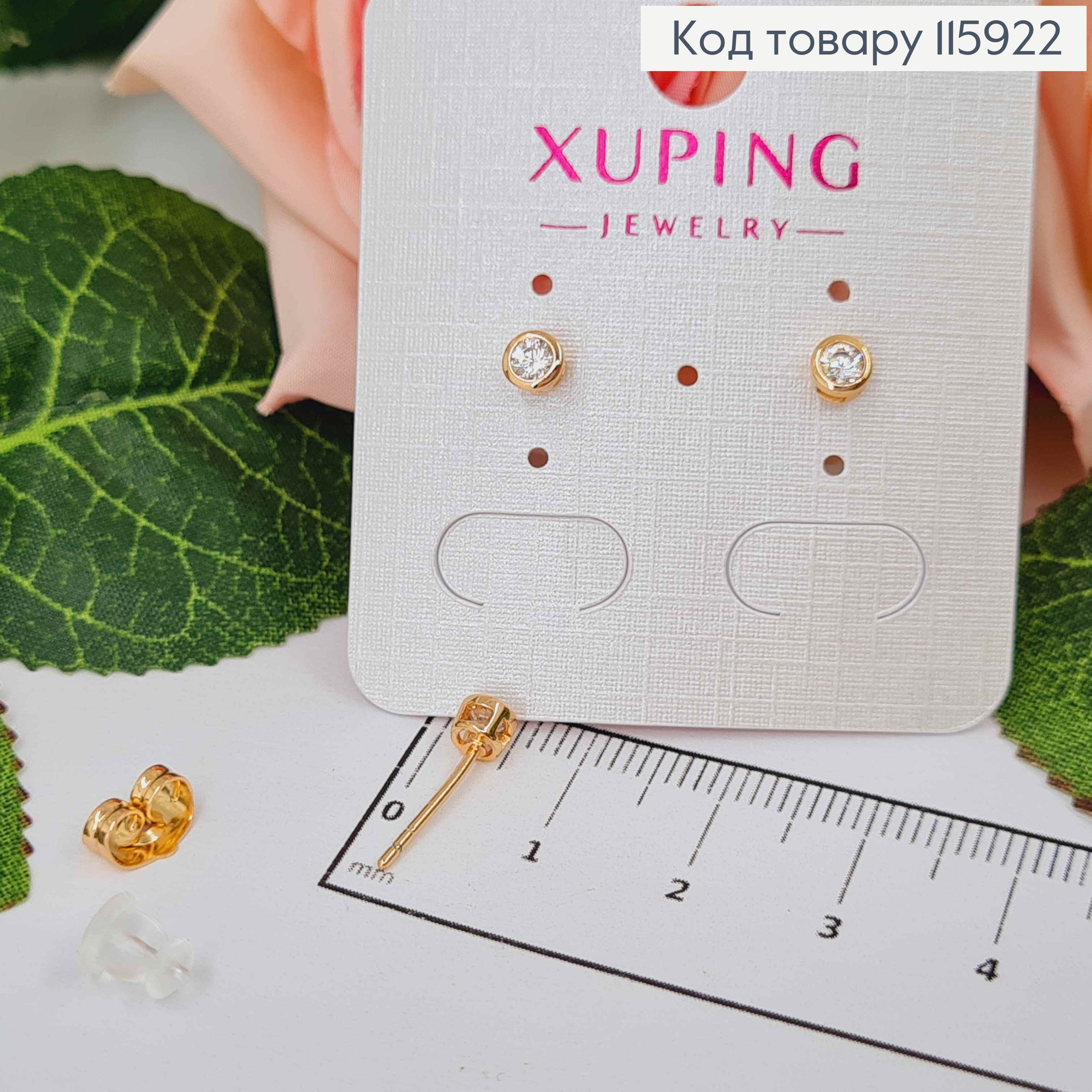 Серьги гвоздики, Камешок в оправе, 4мм, Xuping 18K
