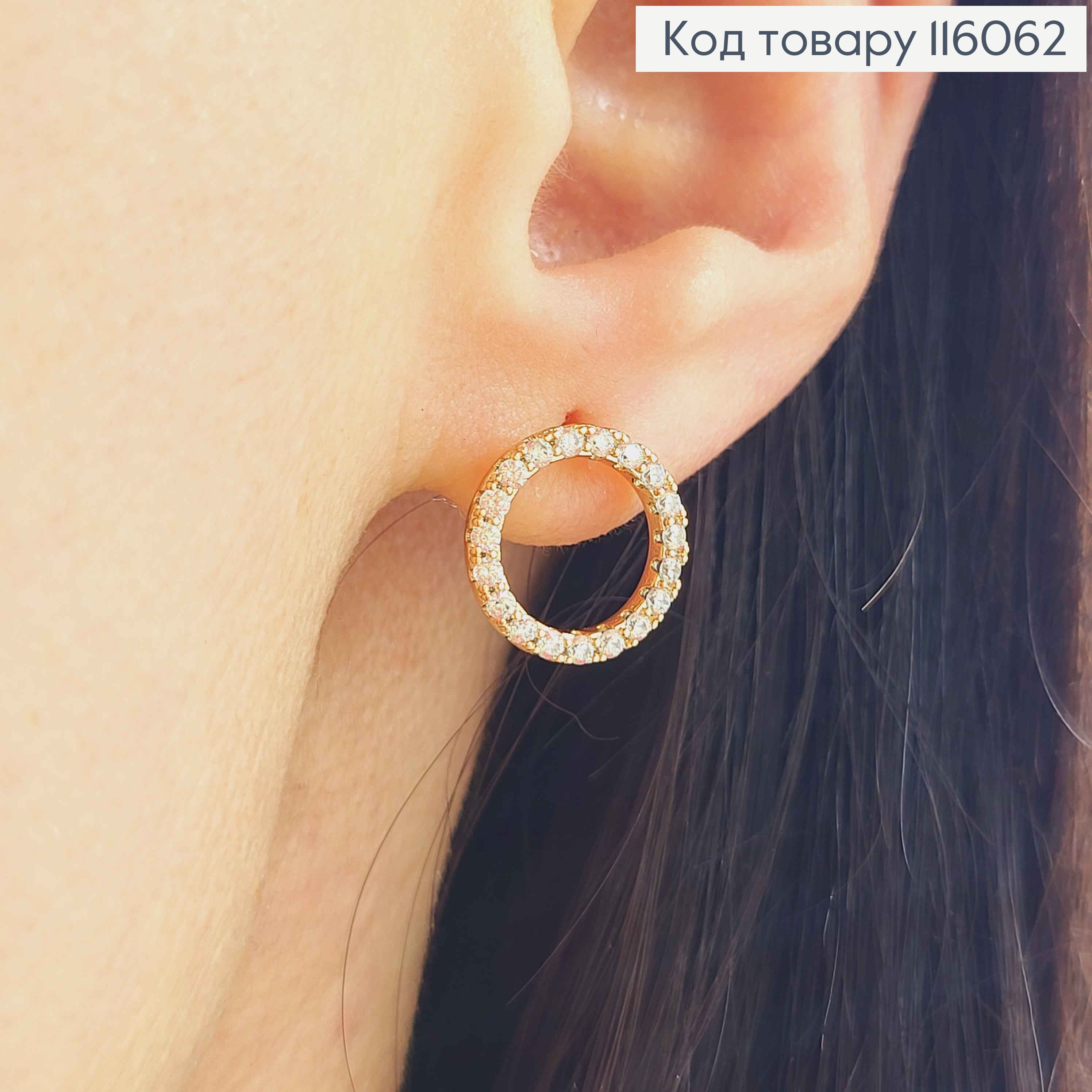 Серьги гвоздики, Кольцо в камешках, 1,3см, Xuping 18K