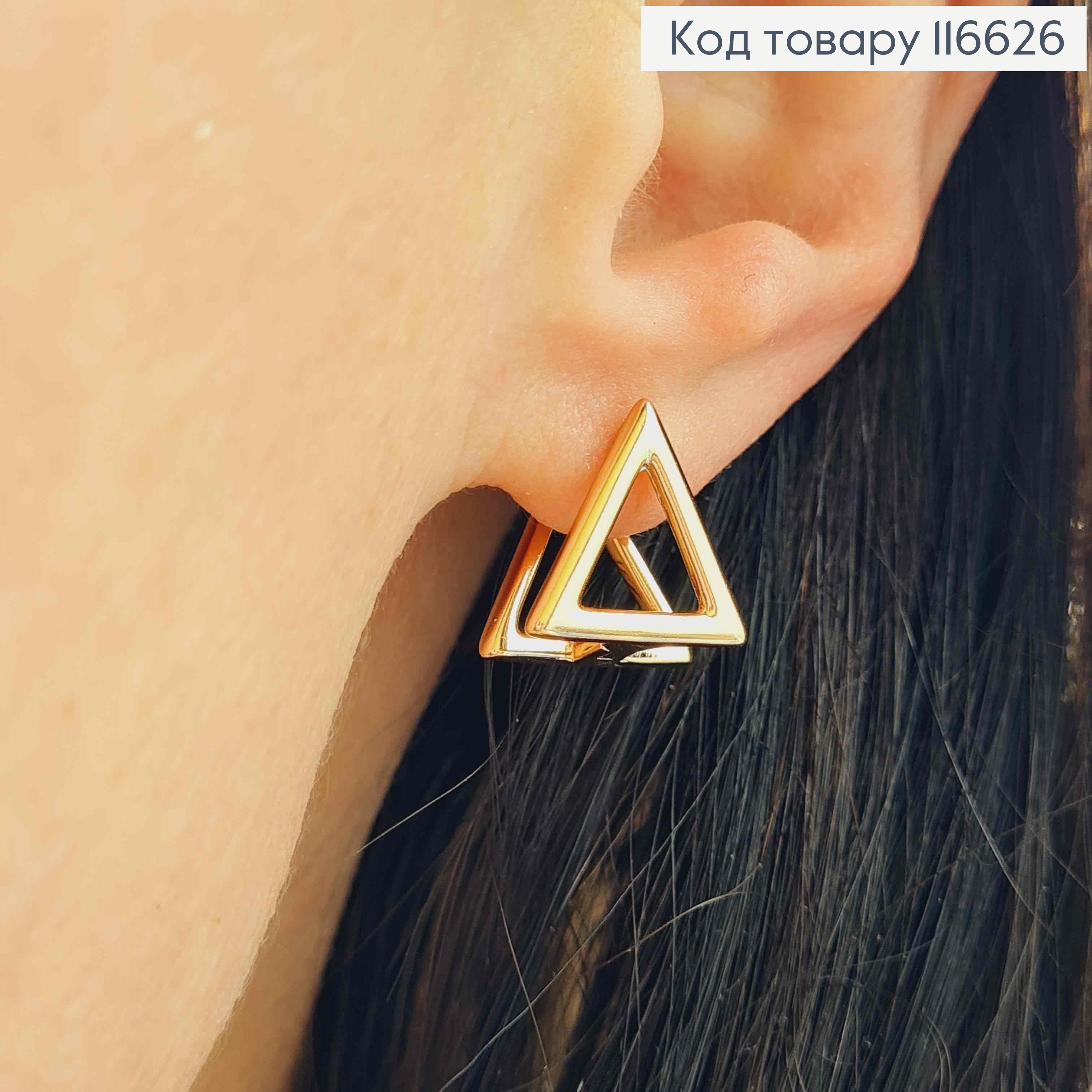 Серьги "Двойные треугольнички" 1,5см, англ. зам. Xuping 18K