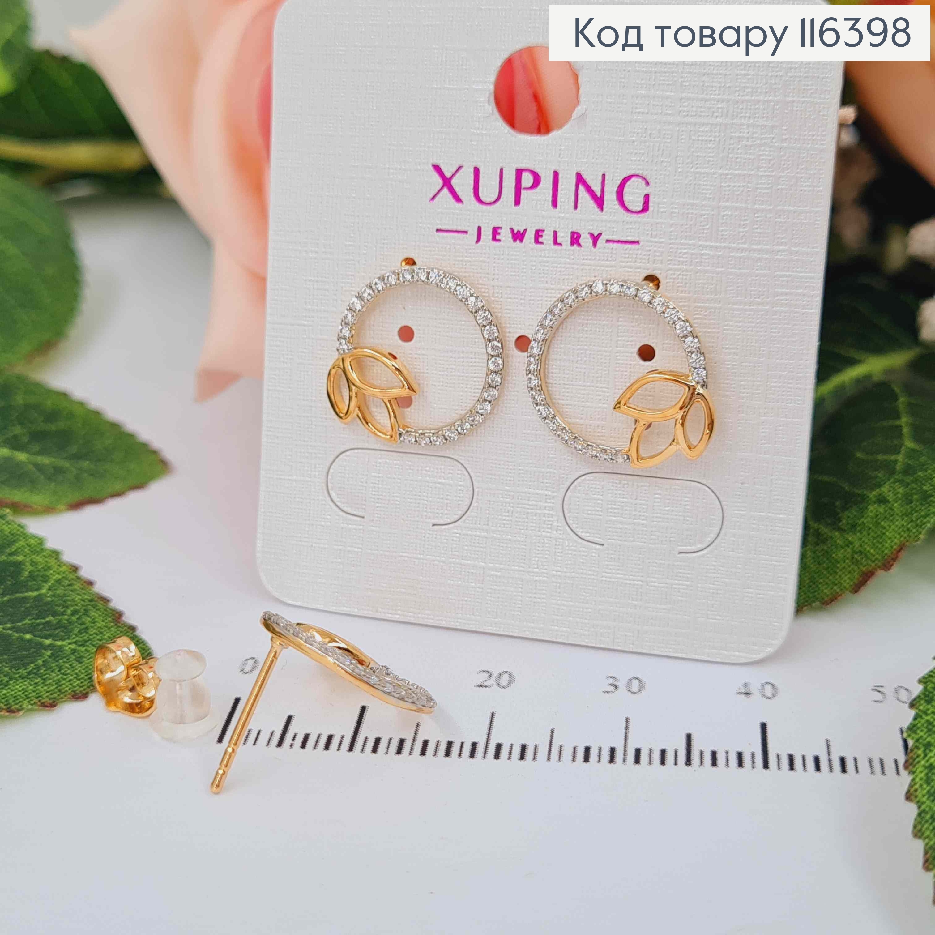 Серьги гвоздики, кольцо в камешках с тремя листочками, Xuping 18K