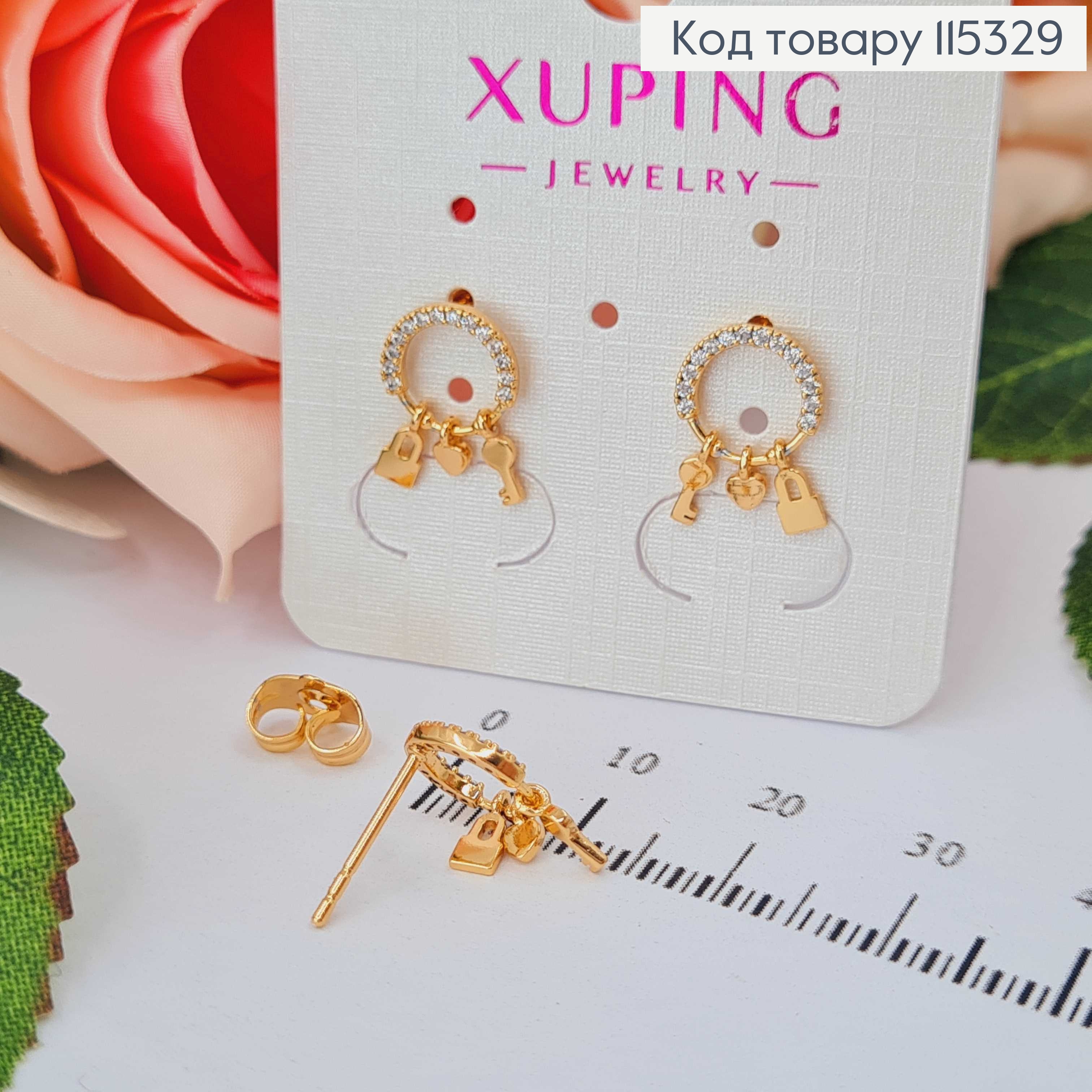 Серьги гвоздики, колечко в камешках, с замочком, 1,5см Xuping 18K