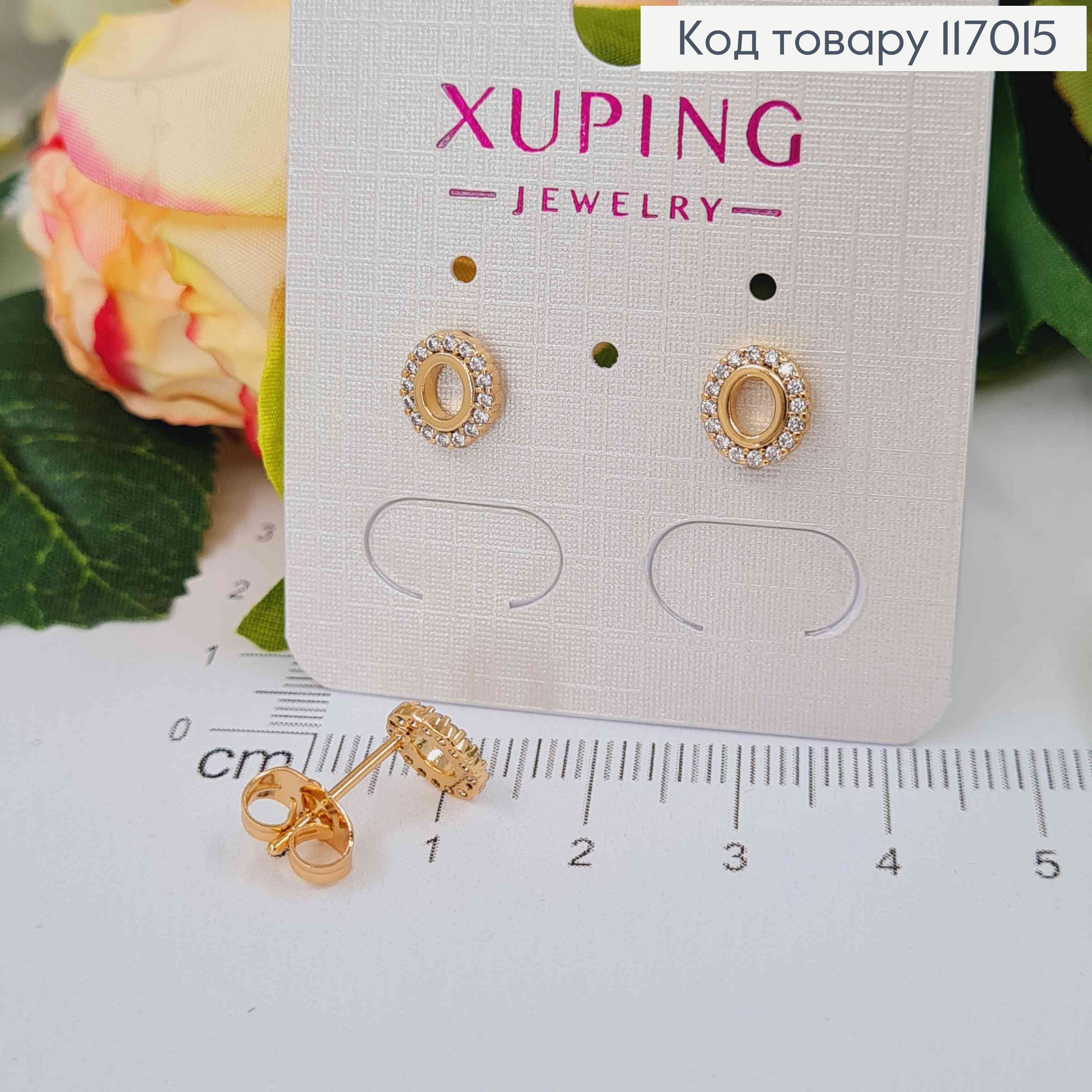 Серьги гвоздики, колечко в оправе из камней, 8мм, Xuping 18K