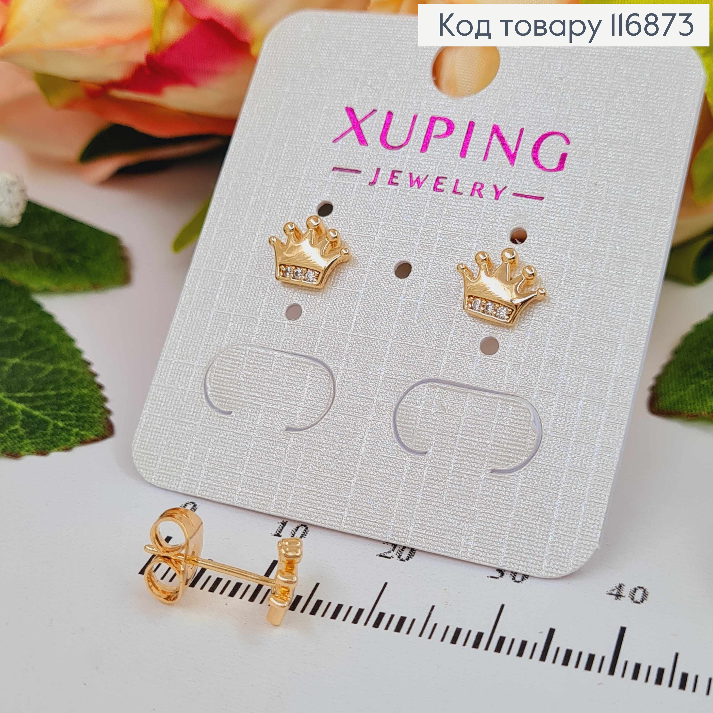 Серьги гвоздики, Корона в камешках, 0,9см, Xuping 18К