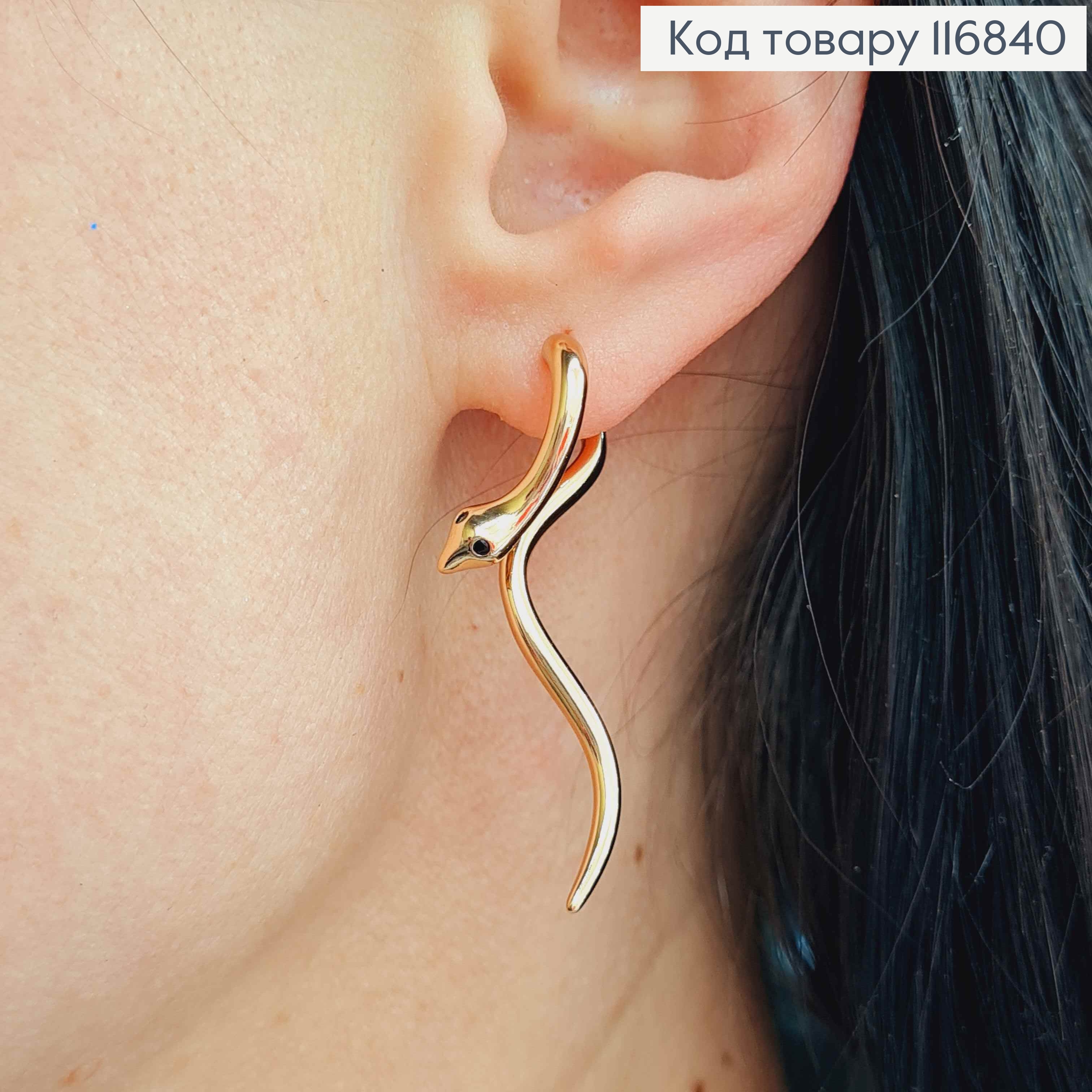 Серьги гвоздики, винтовые Змейки с черными глазами, 4см, Xuping 18K