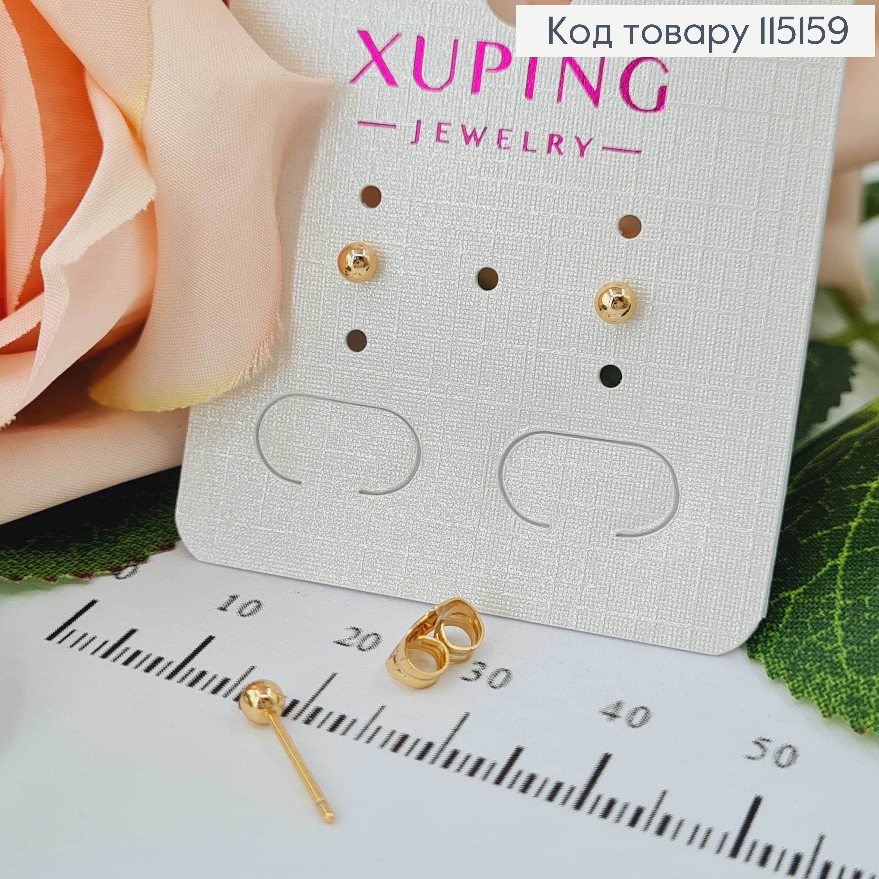 Серьги гвоздики, шарики, 2мм, Xuping 18K