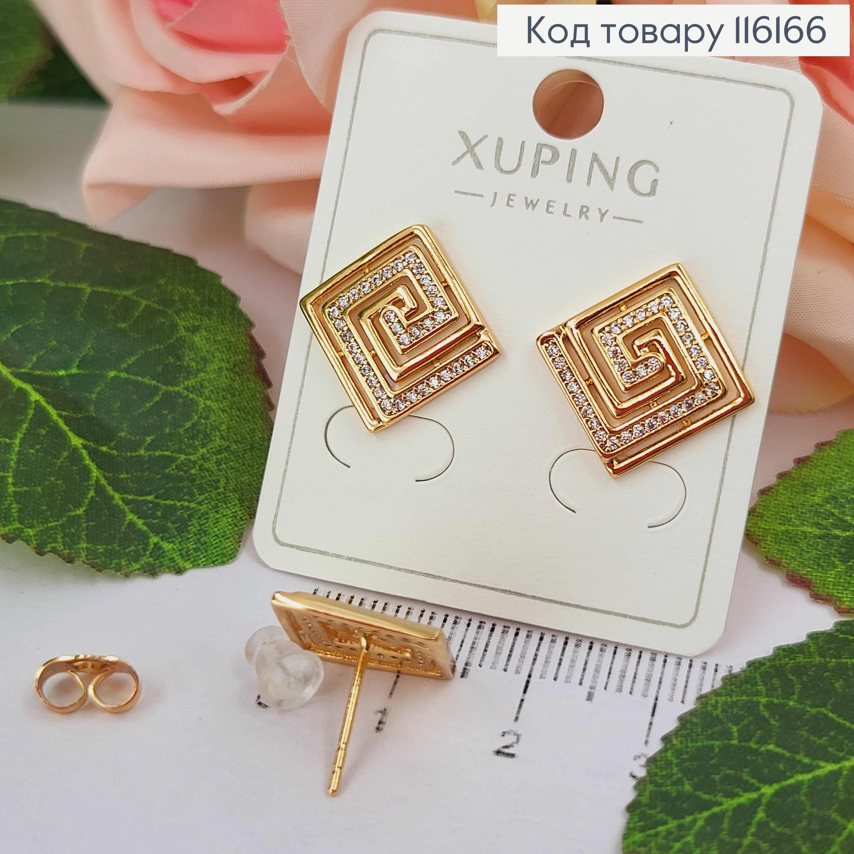 Серьги с квадратным блестящим камнем, 1,9см, английская застежка, Xuping 18K 110257 фото