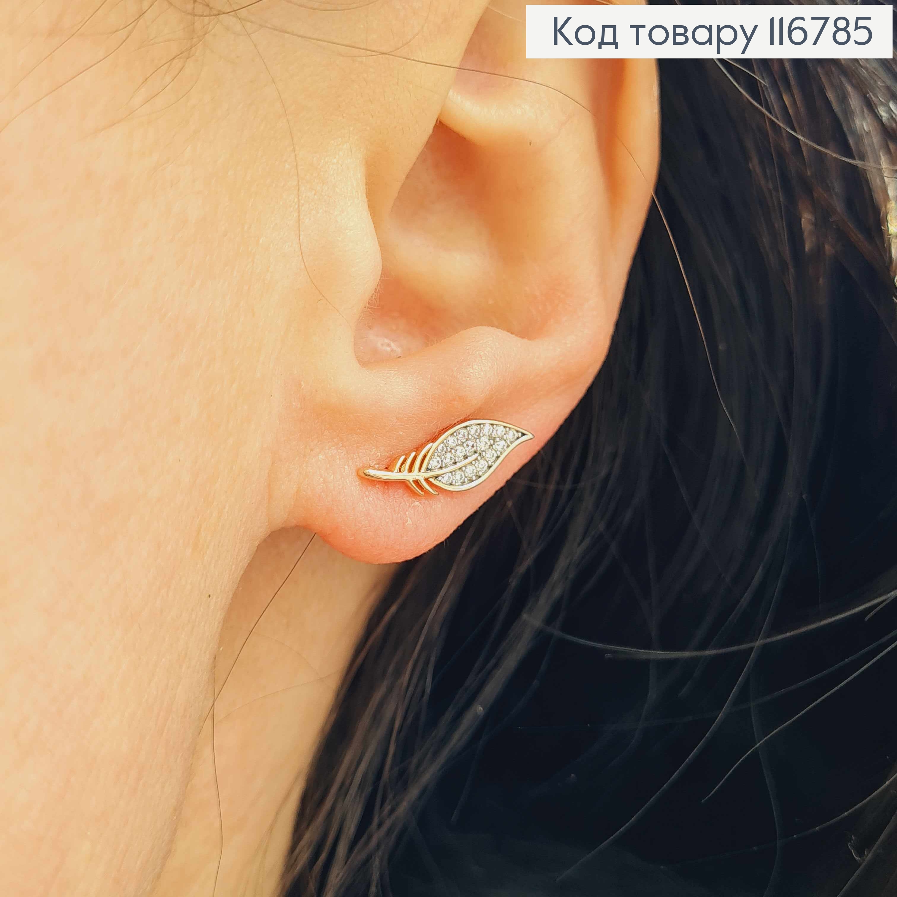 Серьги гвоздики, Листочек в камешках, 1,5см, Xuping 18К