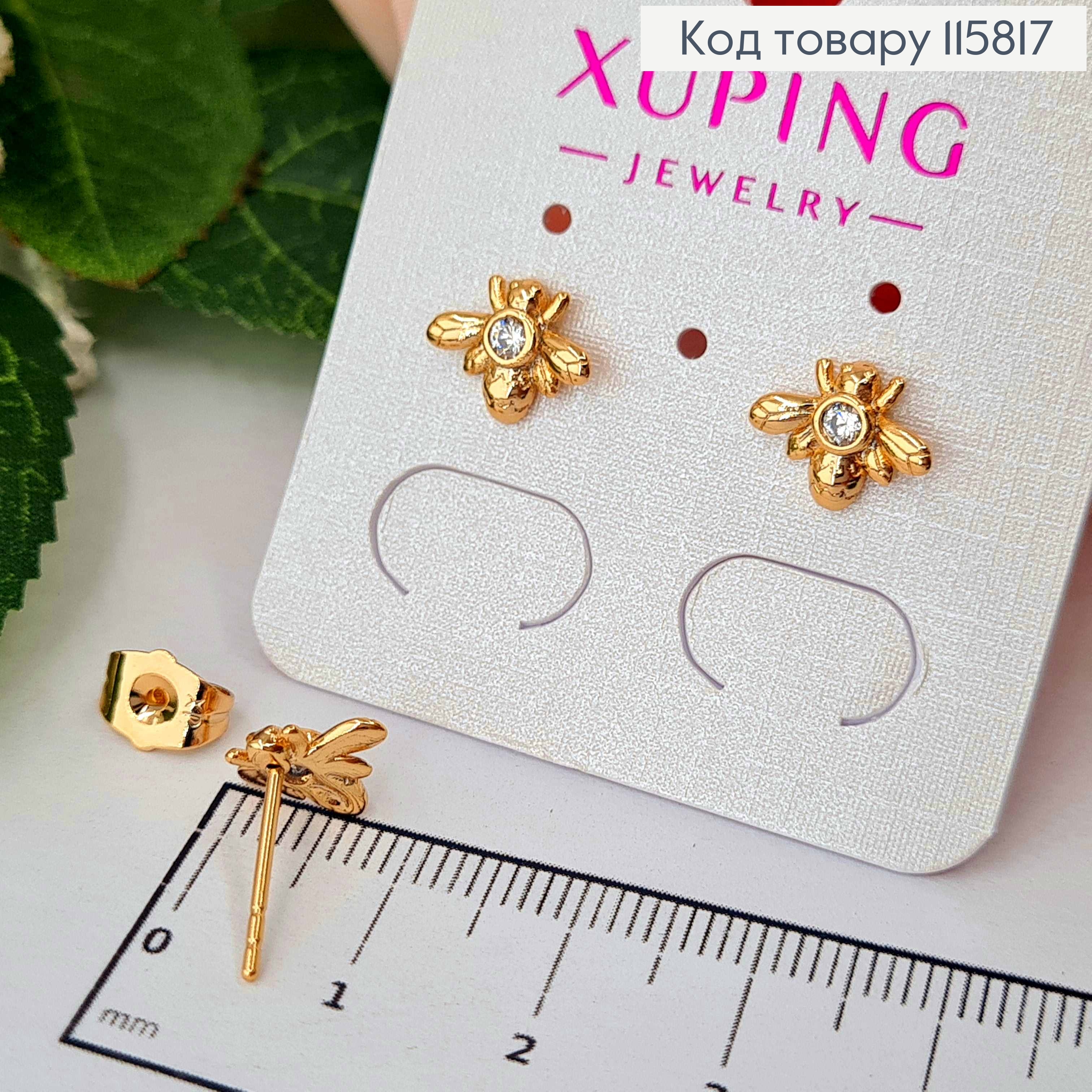 Серьги гвоздики, "Маленькая Пчелка" с камешком в оправе, 1см. Xuping 18K